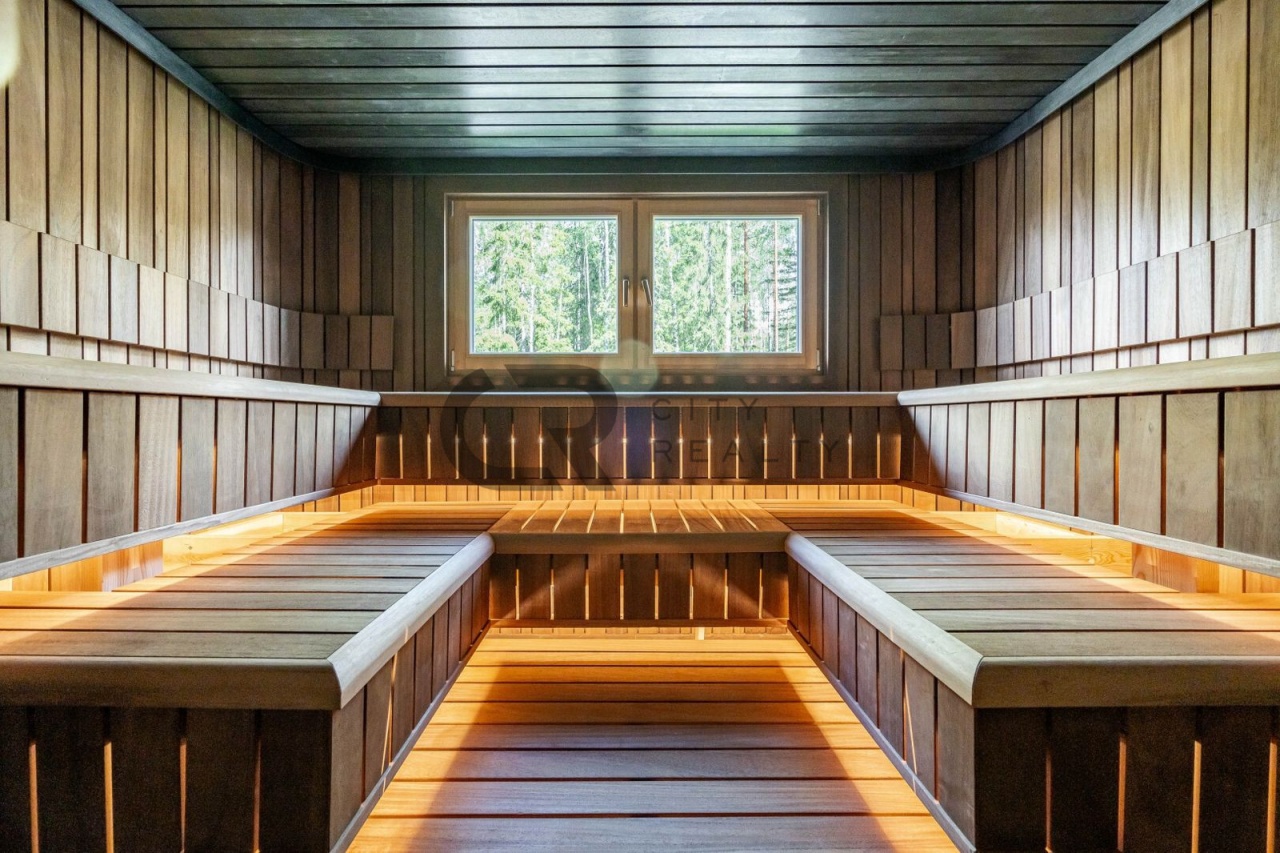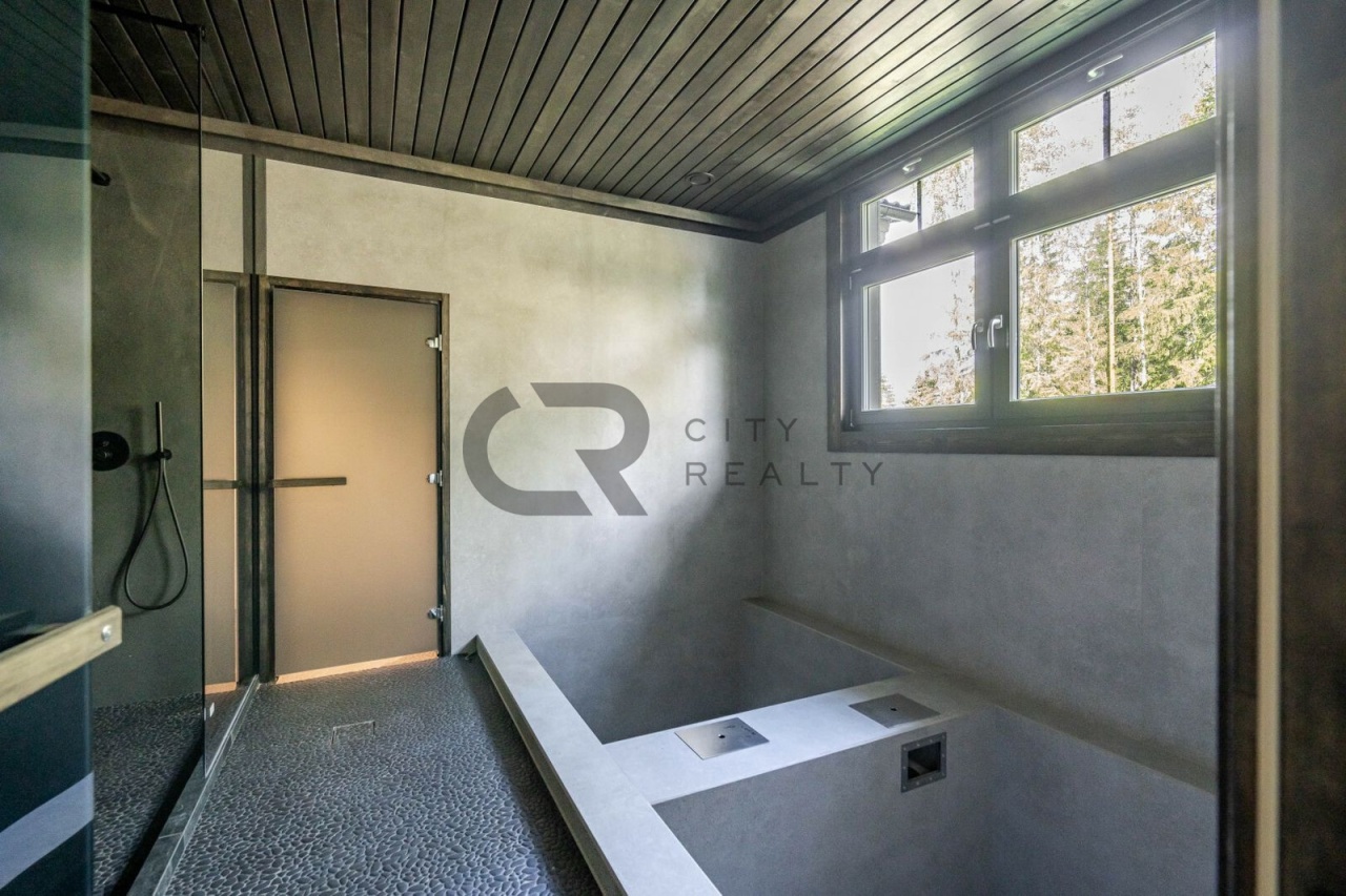 В отделке использовались только натуральные материалы (Дерево, Мрамор, Оникс), установлена техника премиум класса "Gaggenau", " Liebherr", в доме собственная газовая котельная. Систему регулировки микроклимата в доме обеспечивает система "Mitsubishi". Жемчужиной дома стала СПА комната с финской баней, купелью и комнатой отдыха с камином.