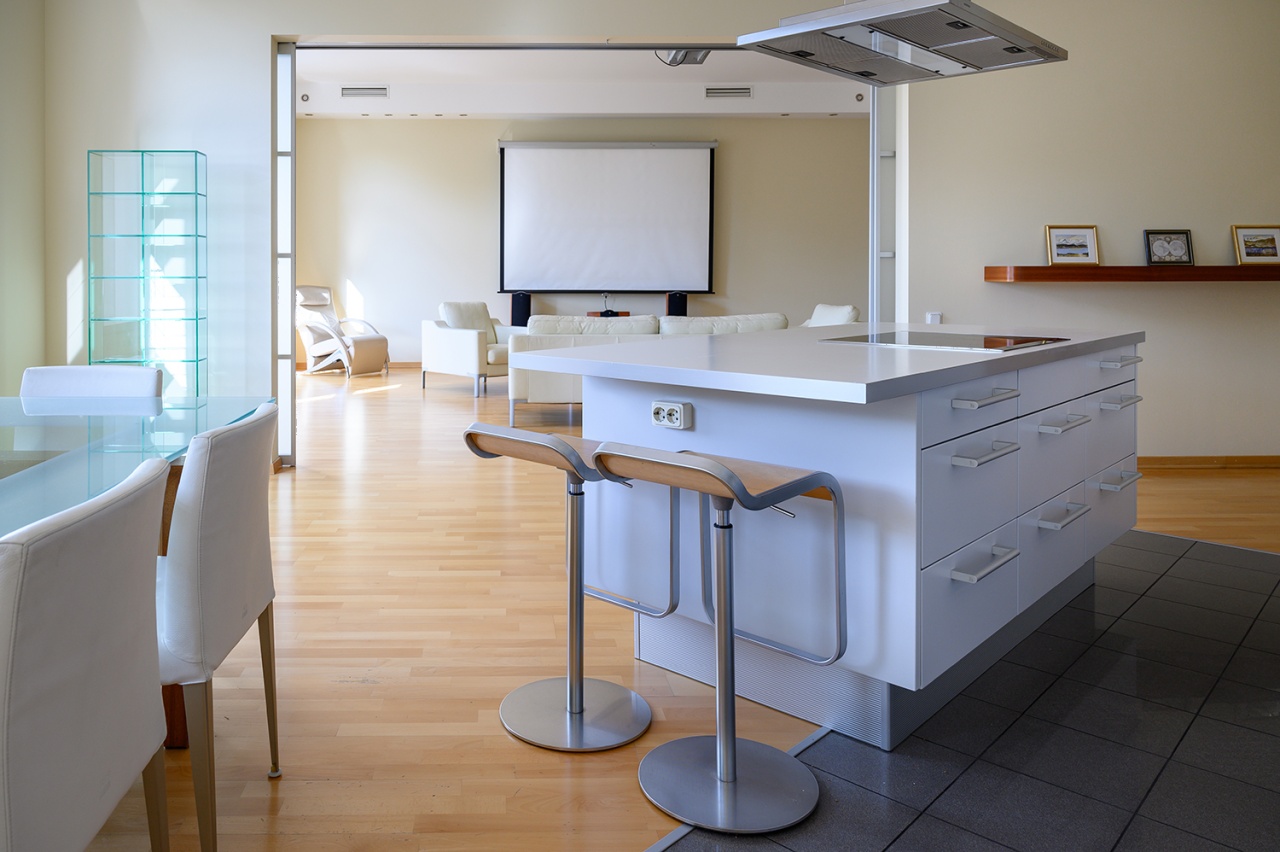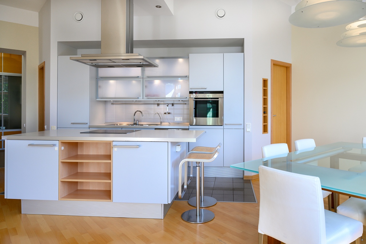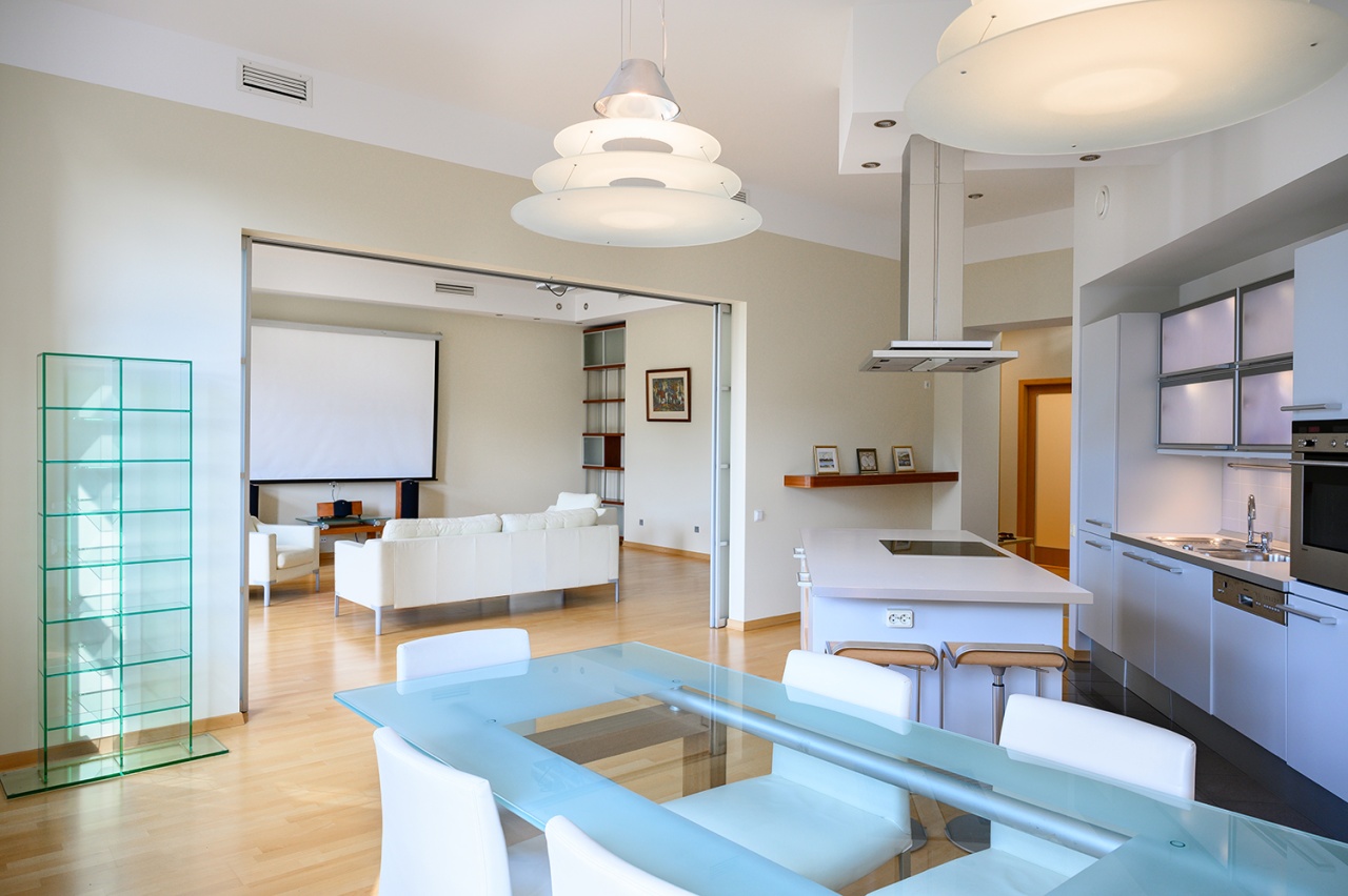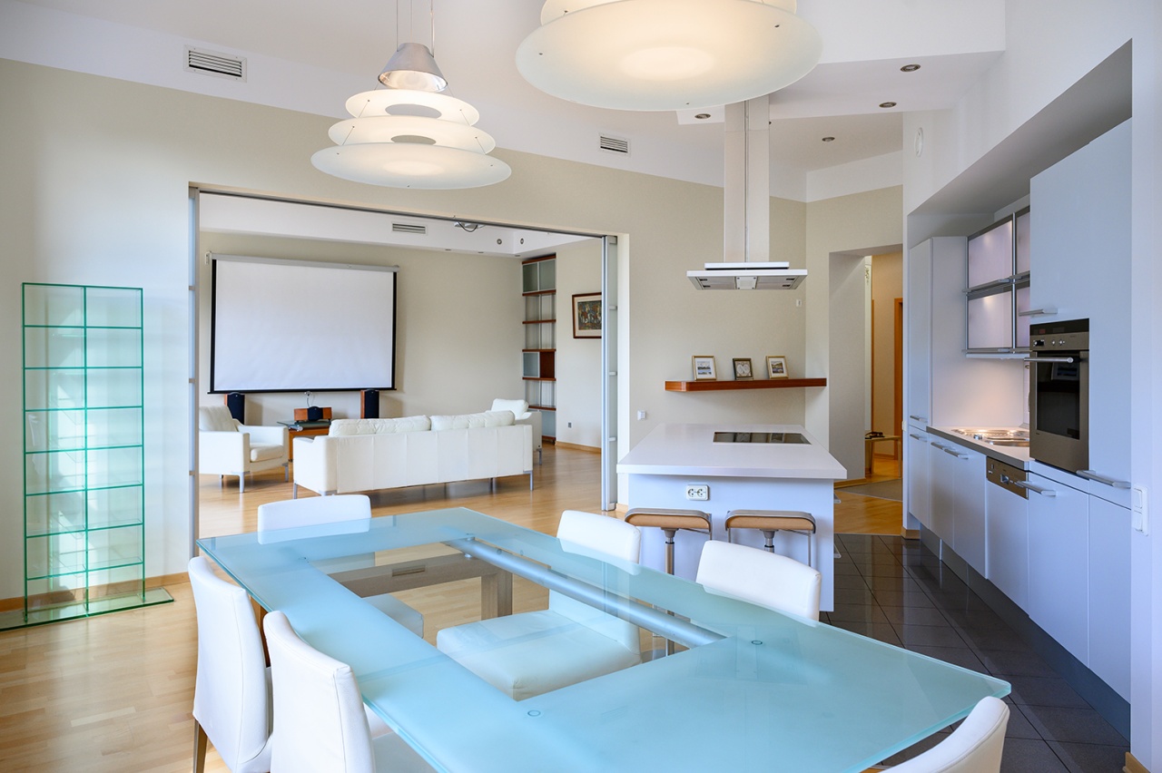 Мебель от топовых мировых производителей (Rolf Benz, B&B Italia) и сделанная на заказ для этой квартиры. Кухонная мебель Poggen Pohl — это один из лучших производителей кухонной мебели в Германии. Вся необходимая кухонная и другая бытовая техника Bosch, Siemens, Gaggenau, Liebherr. Приточно-вытяжная вентиляция и система кондиционирования по всей квартире. Встроенные шкафы. Электрический подогрев полов в зонах с кафельным покрытием.