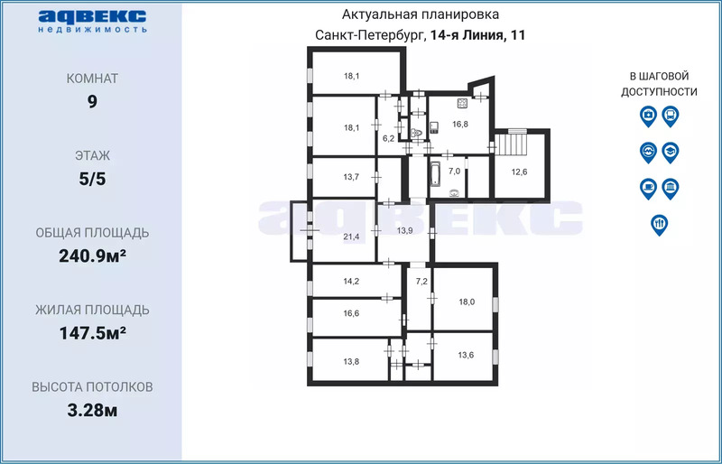 ID: 1907338 Предлагается к продаже- квартира в Доходном доме Ю. К. Додоновой. Этот шикарный дом, объект культурного наследия, расположен на берегу Большой Невы, в самом сердце Санкт-Петербурга. Потрясающей вид из окон. Просторные комнаты-залы, интересная планировка. В квартире имеются 2 входа на парадную и черную лестницу. Все самые известные личности покупают квартиры именно на последних этажах, последний этаж это свой мир, не слышно соседей сверху, не страшны затопления, а так же при желании можно выкупить чердак и крышу, превратить это пространство в 2-3 этажную квартиру, с огромным, роскошным мансардным этажом и террасой с потрясающем видом на все красоты нашего самого красивого в мире города Санкт-Петербурга. Старинные дома отличаются особой прочностью и звукоизоляцией благодаря толстым стенам и перекрытиям, даже если у вас в вашей квартире вечеринка, уйдя в любую комнату вы будете в полной тишине. Высокие потолки, огромные окна придают много света и воздуха. Современные постройки для людей, постройки тех времен для царей, не упустите возможности жить с царским размахом. Места общего пользования требуют ремонта, в самих комнатах свежий косметический ремонт. Большой пр. ВО, 38 - 14-я линия ВО, 11. 1842 - арх. Носков Петр Моисеевич, арх. Краснопевков Захар Филиппович 1914-1915 - техн. Смирнов Д. Д. строительство с включением существовавшего здания надстройка трехэтажного корпуса по 14-й линии 1915 - арх. Алексеев Николай Иванович - расширение, перестройка Строгий и благородный по тону жилой дом напоминает постройки Лидваля. (арх. Смирнов был сотрудником Лидваля). Фасад обработан различными видами штукатурки. В этом доме жили: в 1910-1920-х гг. был арх. С. С. Серафимов, автор здания Главного казначейства на Фонтанке. 1915-1924 гражданский инженер Н. Ф. Савельев. 1916-1925 архитектор С. С. Серафимов.
