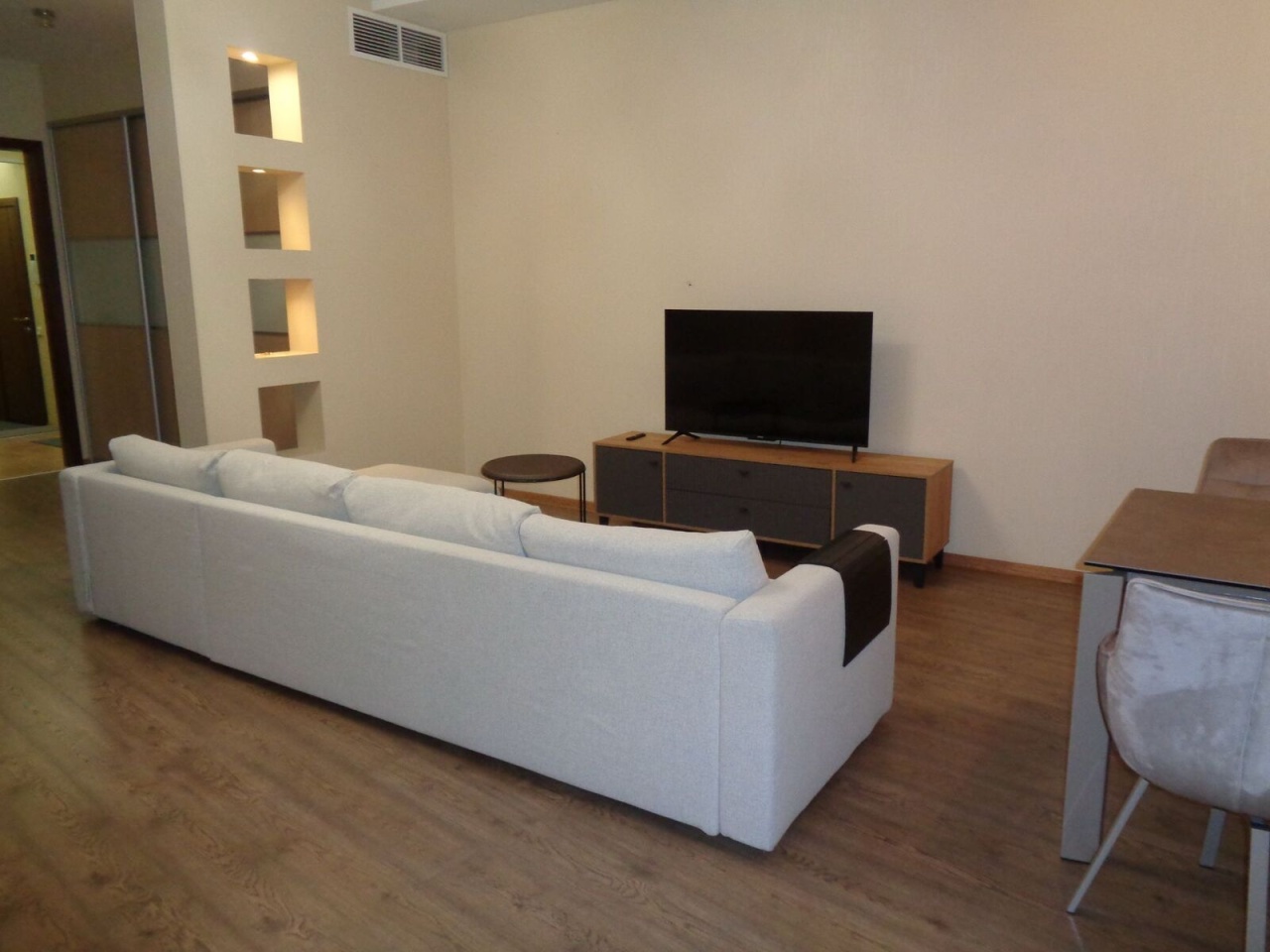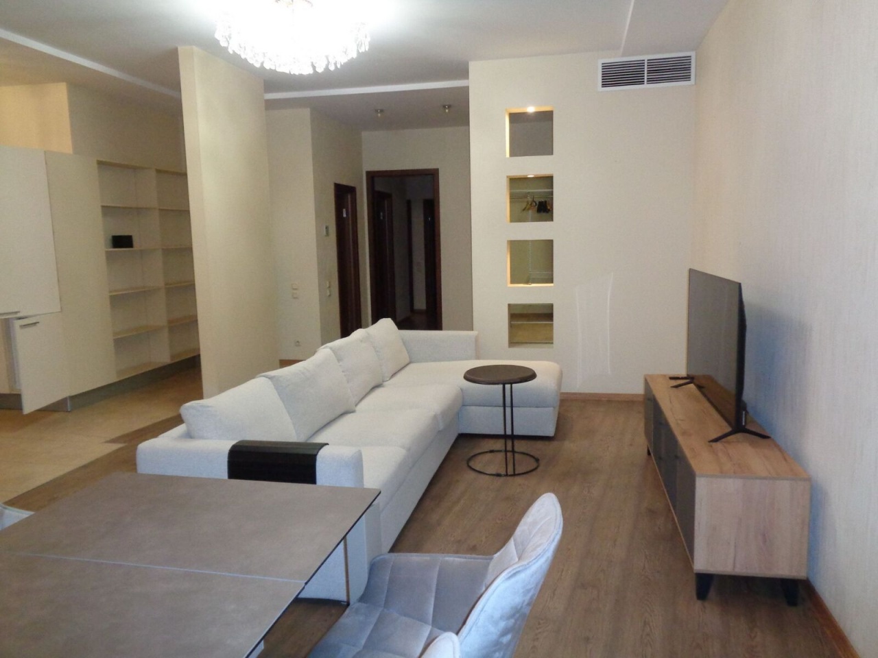 ID: 389837 В новом комплексе Бизнес Класса (2006) на Воскресенской наб., 4 сдается на долгий срок 3-х кк видовая квартира с панорамными видами на Неву 110.95 кв. м с балконом. В квартире выполнен качественный Евро ремонт. Комплекс имеет большую благоустроенную охраняемую закрытую территорию с детской площадкой и зеленью. При комплексе есть спа и фитнесс центр «Парус" с бассейном. Панорамные виды на Неву из больших окон гостиной-кухни (45.3 кв. м). 2 спальни (16, 7 кв. м + 16.6 кв. м) выходят окнами в тихий закрытый Евро двор с зеленью и детской площадкой, из обеих спален выход на балкон квартиры. В основной спальне установлена новая мебель, в том числе кровать 180х200 см, во второй спальне-кабинете новый раскладной диван, компьютерной стол, кресло. Одно парковочное место в подземном паркинге дома. 24-часа охрана комплекса. Система климат-контроля (притяжная вентиляция с охлаждением и нагревом воздуха), электрический подогрев полов во всех кафельных зонах (в обеих ванных, прихожей, перед встроенной кухней) и в зоне окна-эркера в гостиной. Большие встроенные шкафы (два в прихожей, один в основной спальне и гардеробная в кабинете-гостевой спальне). Оборудованная кухня, есть посудомоечная машина (60х60), электрические плита, духовка, вытяжка, холодильник. Электрический бойлер на случай отключения горячей воды. Две ванных комнаты: ванная 4.60 кв. м и душевая с просторной душевой кабиной 5.45 кв. м. В ванной есть стиральная машина LG с функцией сушки белья. Есть функция регулировки интенсивности нагрева батарей отопления. Квартира сдается с мебелью. Стоимость парко места в подземном гараже дома включена в стоимость аренды, при этом коммунальные услуги за паркоместо оплачиваются арендатором дополнительно. Оплата коммунальных платежей за квартиру не включена в стоимость аренды и составляет в среднем около 15500 рублей в мес., плюс к этому арендатор оплачивает по счетчикам за электричество, воду, а также за пользование интернетом.