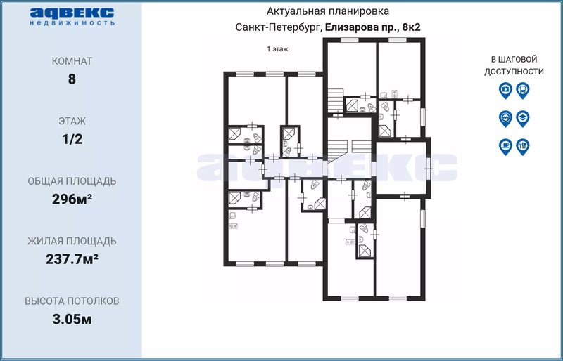 Этаж 1 Общая площадь 296 кв.м.
