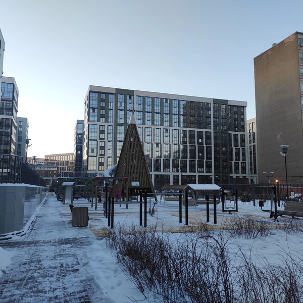 Новый современный ЖК Эмеральд на Малой Неве со своей закрытой территорией, видеонаблюдением, детскими площадками с безопасным покрытием, тренажёрными зонами, собственным фонтаном.