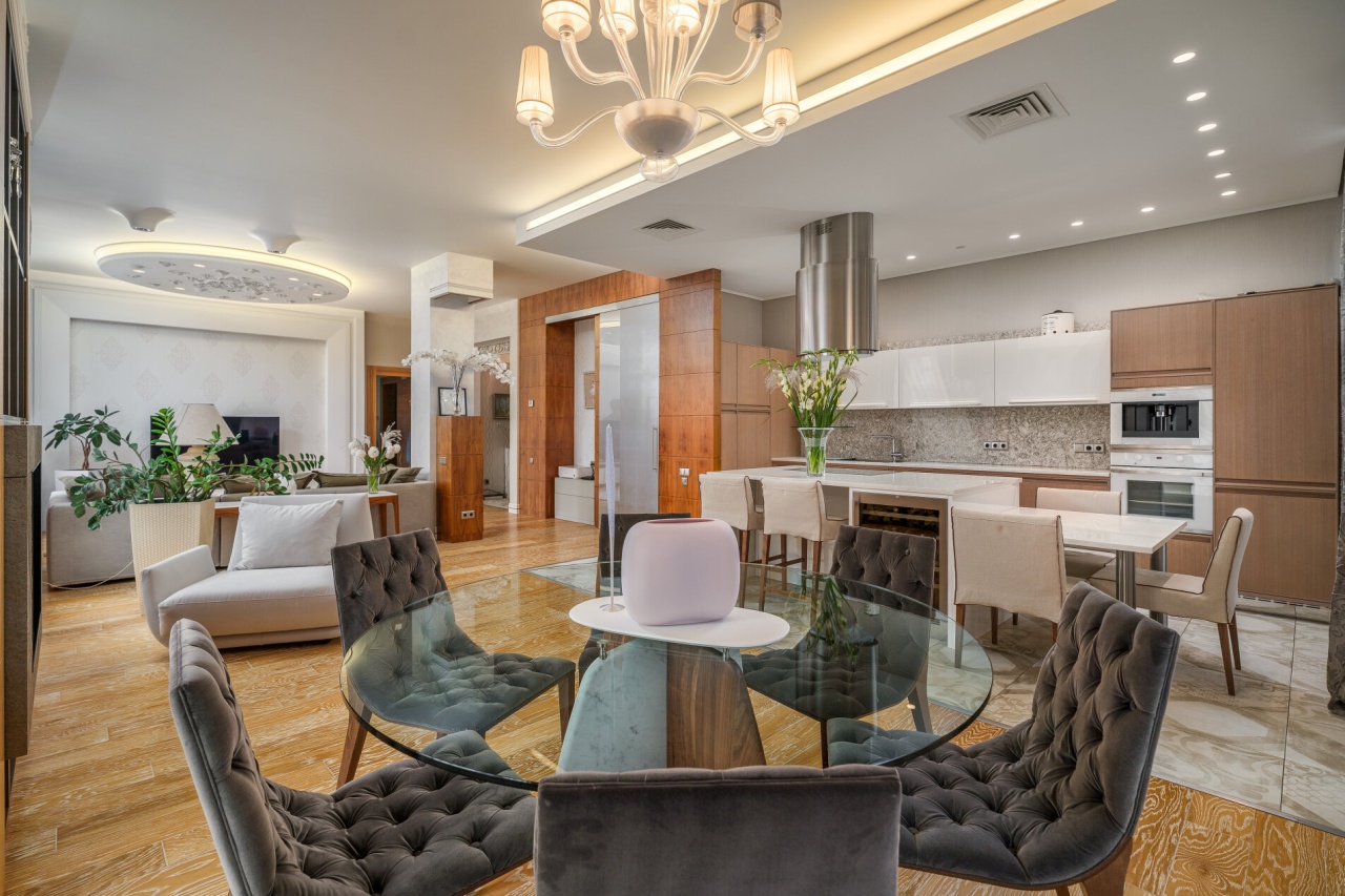 Квартира с ремонтом в знаменитой "Венеции". Лучшие материалы и бренды - мрамор, ценные породы дерева, Kuppersbusch и Villeroy & Boch. Вид на Невку и Крестовский. 9 больших окон практически от пола. Потолки 3.3 м. Прислать Вам презентацию, где все 23 фото с планировкой. Напишите, позвоните, пожалуйста нам. Готовая квартира в лучшей части Крестовского острова. Ремонт в стиле эклектика выполнен очень тщательно с вниманием к деталям. Автор проекта известный архитектор Елена Лагутина — все максимально выверено и продумано. Планировка включает в себя гостеприимный холл, две отдельные мастер-спальни, каждая со своей ванной комнатой и гардеробной и большую гостевую зону, которая визуально поделена на три зоны — кухню, обеденную зону и зону отдыха, где расположившись на удобном диване Вы будете любоваться видами на парк. В квартире действительно много окон воздуха и света. Часть окон двойные — выглядит очень эффектно и добавляет объема. Из любой точки гостиной Вы любуетесь кронами деревьев, Крестовским и видами на воду. Сад буквально прямо у Ваших ног и сам дом стоит прямо на берегу реки. Купите и живите счастливо. Общая площадь 172.2 м².