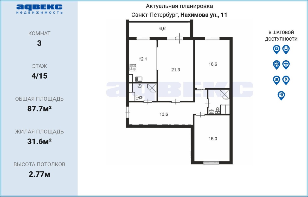 Этаж | 4 | Общая площадь | 87.7 кв.м. |