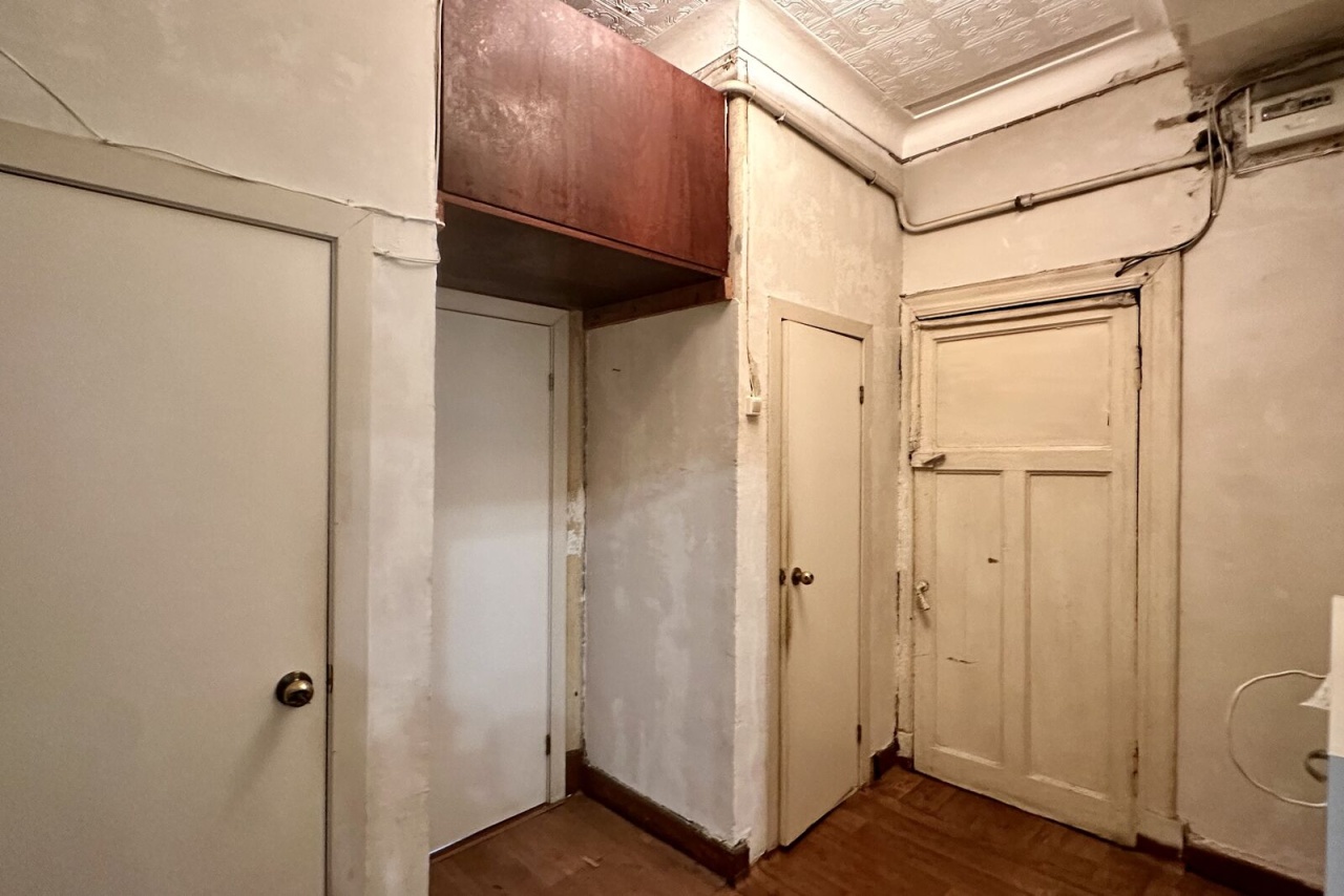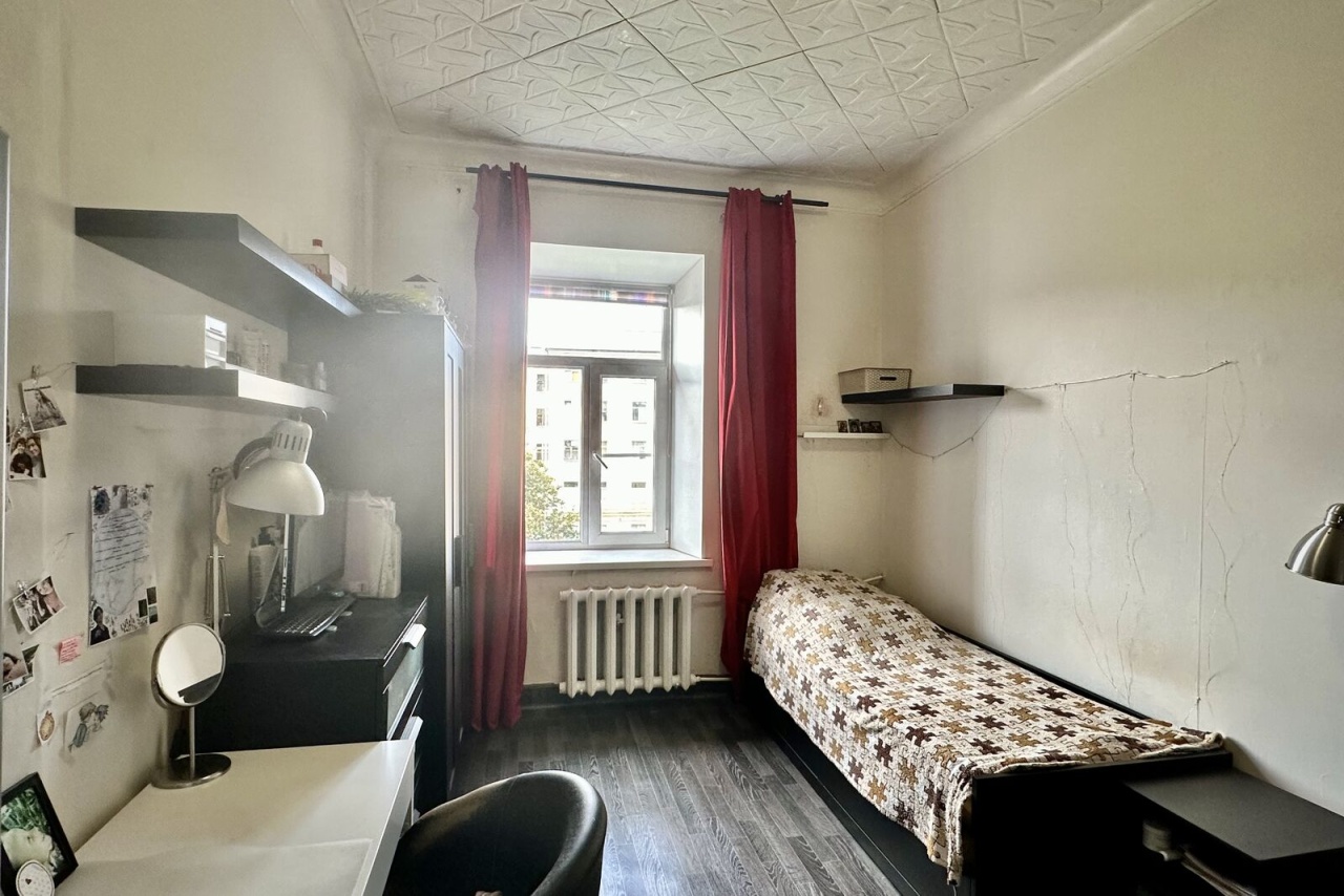 Квартира коммунальная, три взрослых собственника, редкостное единство и взаимопонимание в вопросе продажи. Одна комната (доля) находится в залоге у банка, но перед переоформлением кредит будет погашен и обременение снято.