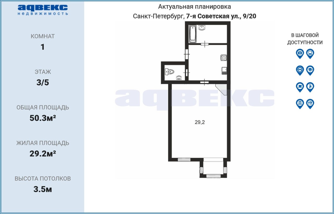 | Жилая площадь | 29.2 кв.м. | Число комнат | 1 |