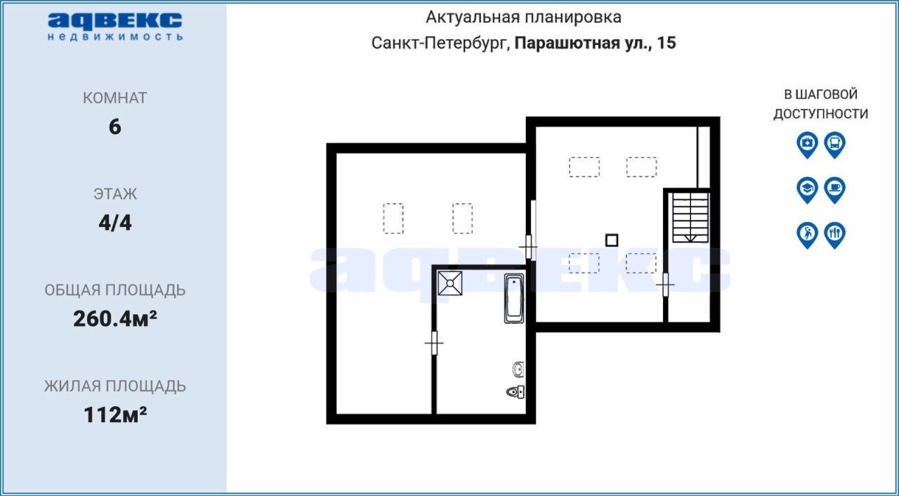 | Этаж | 4 | Общая площадь | 260.4 кв.м. |