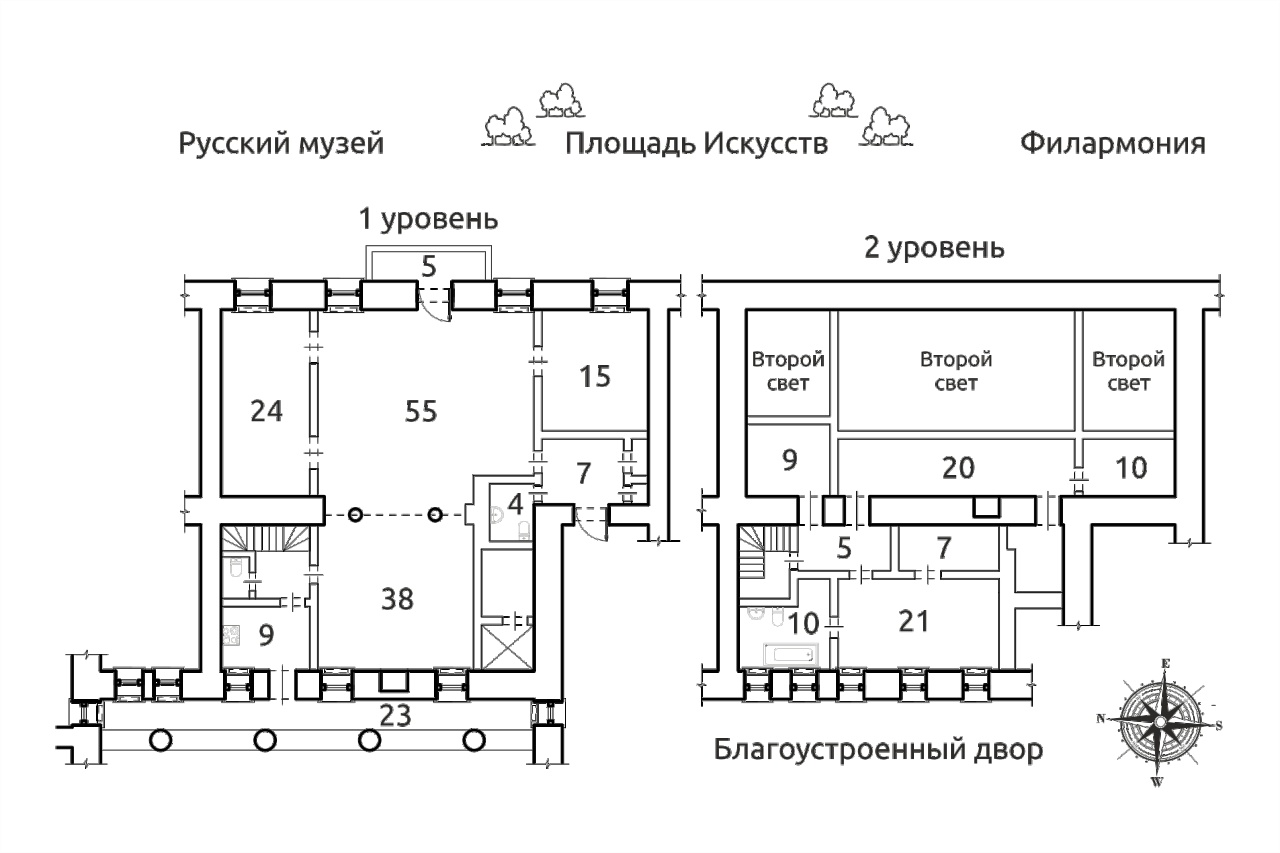 В двух шагах — площадь Искусств, Итальянская улица, Большой зал филармонии, Малый оперный театр, отель «Европа». В доме — круглосуточная охрана, контролируемый доступ во внутренний двор.