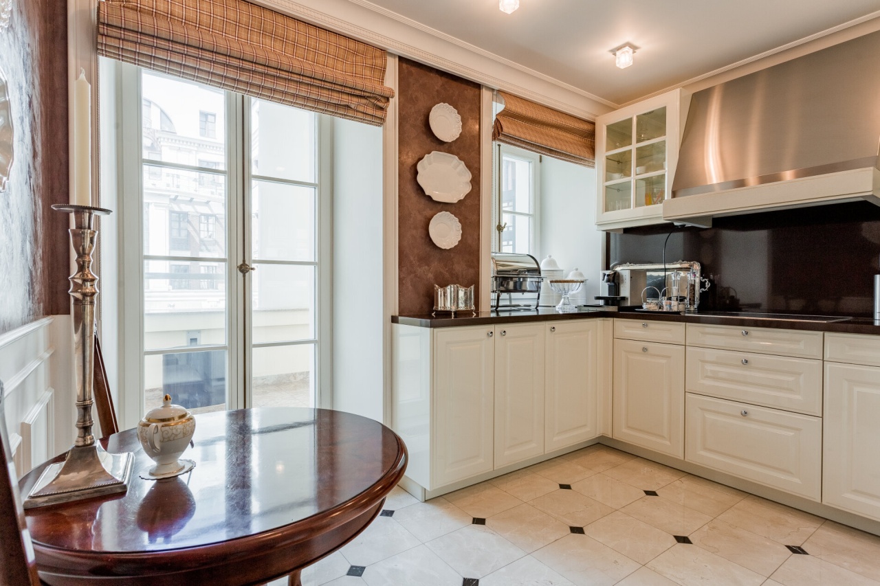 Ремонт в идеальном состоянии: мебель «Baker», обои ручной работы, рояль «Bosendorfer», дизайнерские двери, техника и акустика «Bang Olufsen», люстры из Америки, посуда с золотым покрытием, действующий камин.