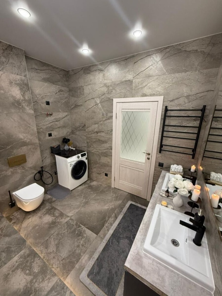 Квартира достойна дома Бизнес-класса. Дизайнерский ремонт с использованием современных качественных материалов. Все продумано до мелочей. Шикарная ванная комната.