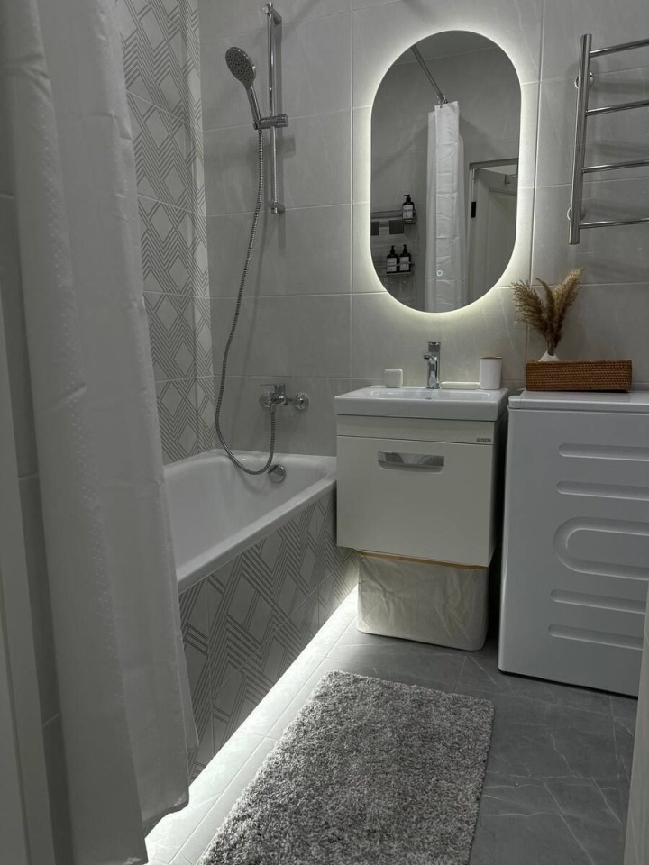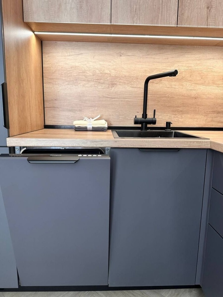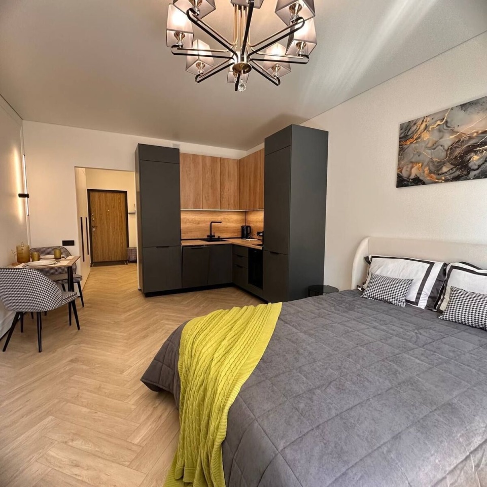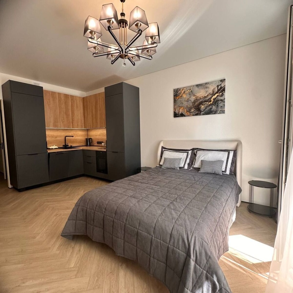 В квартире сделан евроремонт, продумано все до мелочей. Удобная двухспальная кровать, полностью оборудованная кухня, оснащенная всей техникой-холодильник, электрическая плита, посудомоечная машина, духовой шкаф, чайник. Есть посуда.