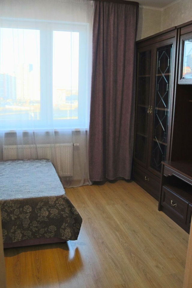 В квартире остаётся и входит в цену новый кухонный гарнитур со встроенной бытовой техникой: варочная панель фирмы Gorenje, посудомоечная машина Bosch, вытяжка, мебель в комнате 11.3 кв. м.
