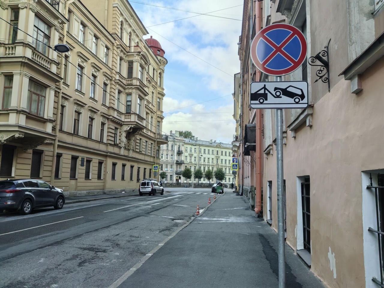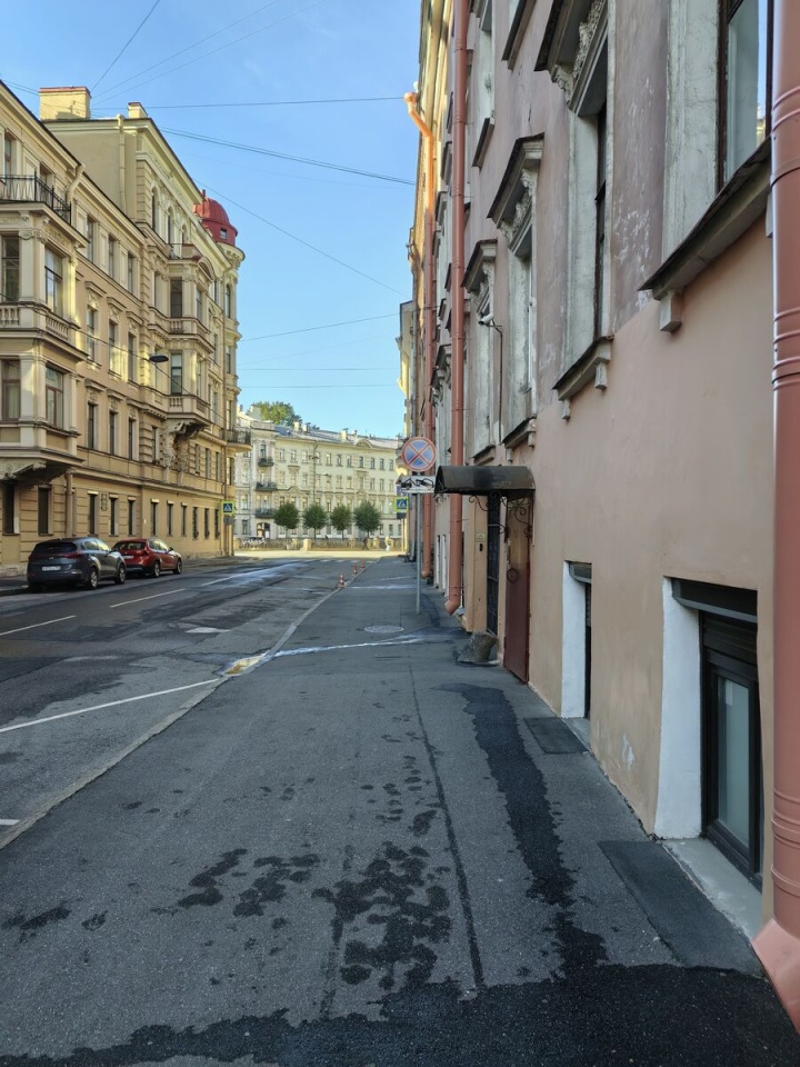 тихая улочка в центре города, с двух сторон выходит на канал Грибоедова, с одной стороны есть пристань для малых судов,