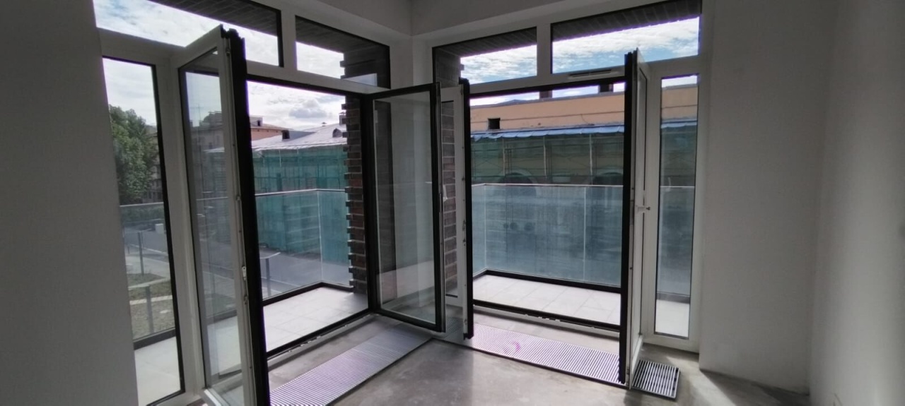 высота потолков 3 м, панорамные окна в пол высотой 2.8;
