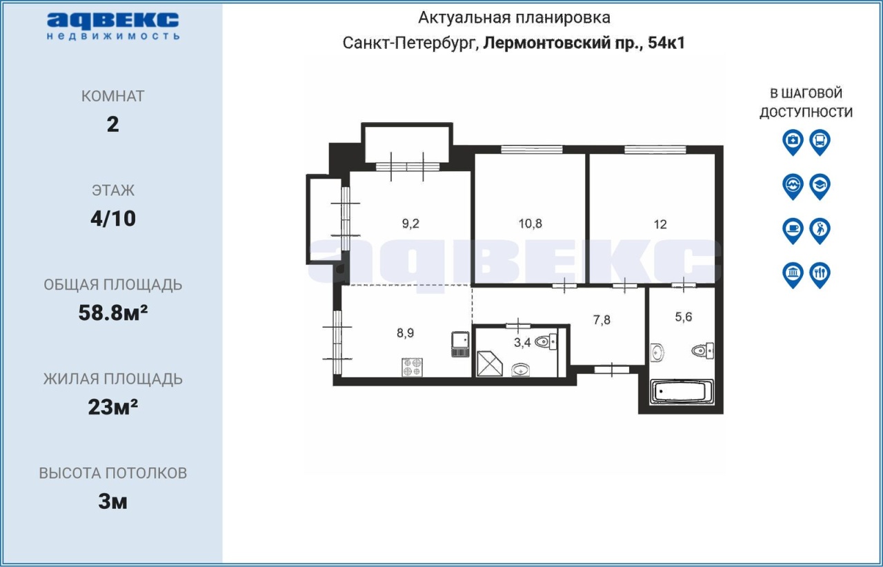 В 5 минутах пешком от станции метро «Балтийская». 3-х комнатная евро с двумя балконами.
