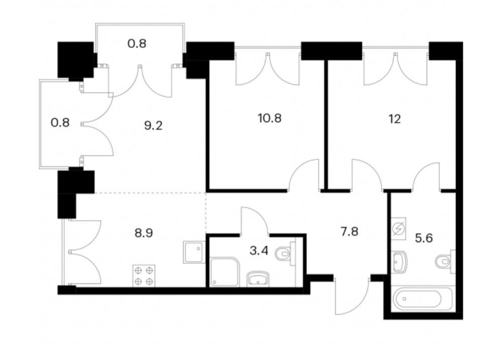 подчистовая отделка включает в себя стяжку, отштукатуренные стены, гидроизоляцию, конвекторы двери;