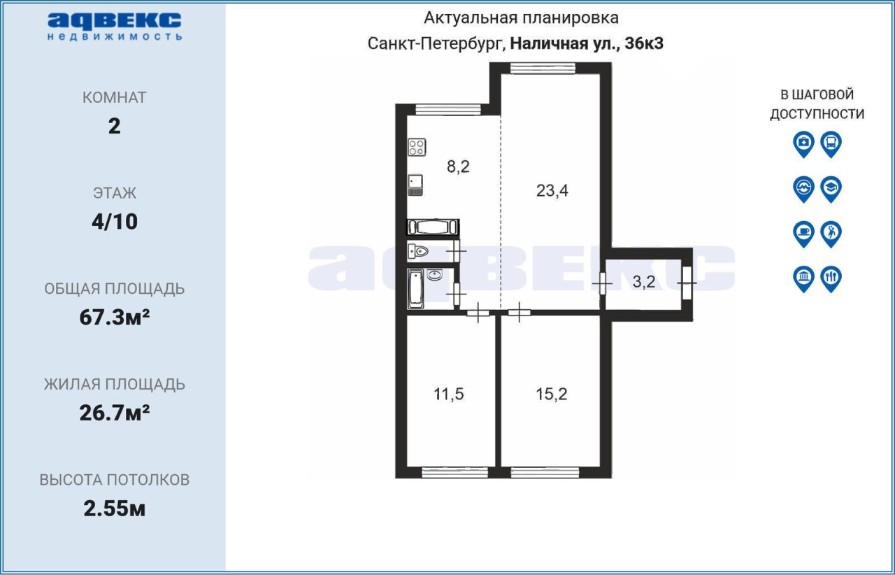 Транспортная доступность: метро "Приморская" 7 минут пешком, автобусные и трамвайные остановки 5 минут пешком, удобный выезд на ЗСД 5 минут на авто.