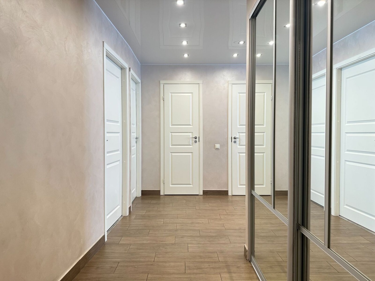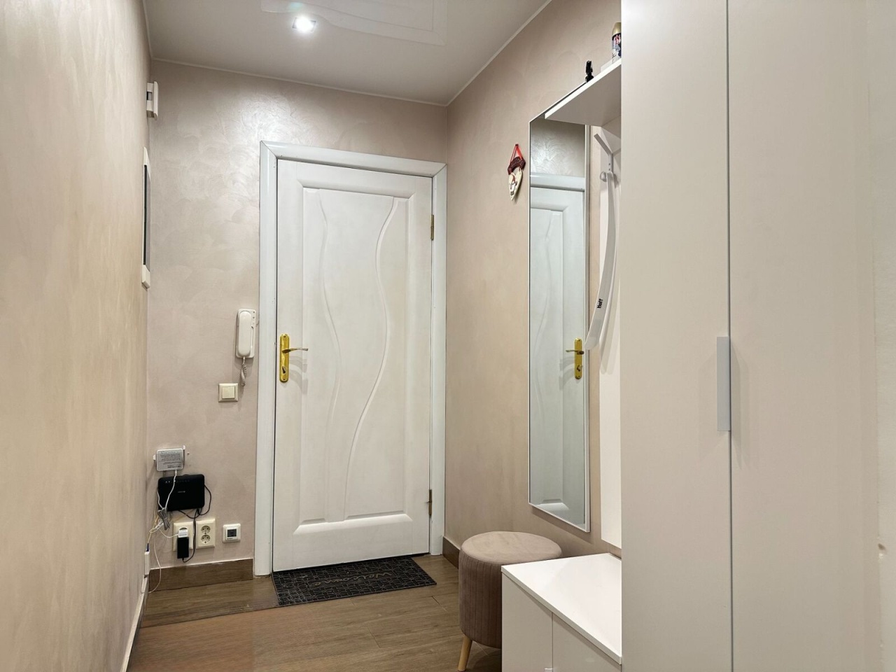 В квартире сделан современный ремонт с использованием качественных материалов с заменой всех коммуникаций и электрической проводки. Организованы места для хранения. Теплые полы в зоне кухни и прихожей.