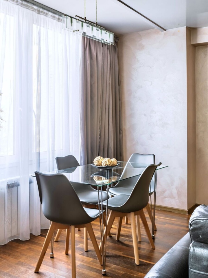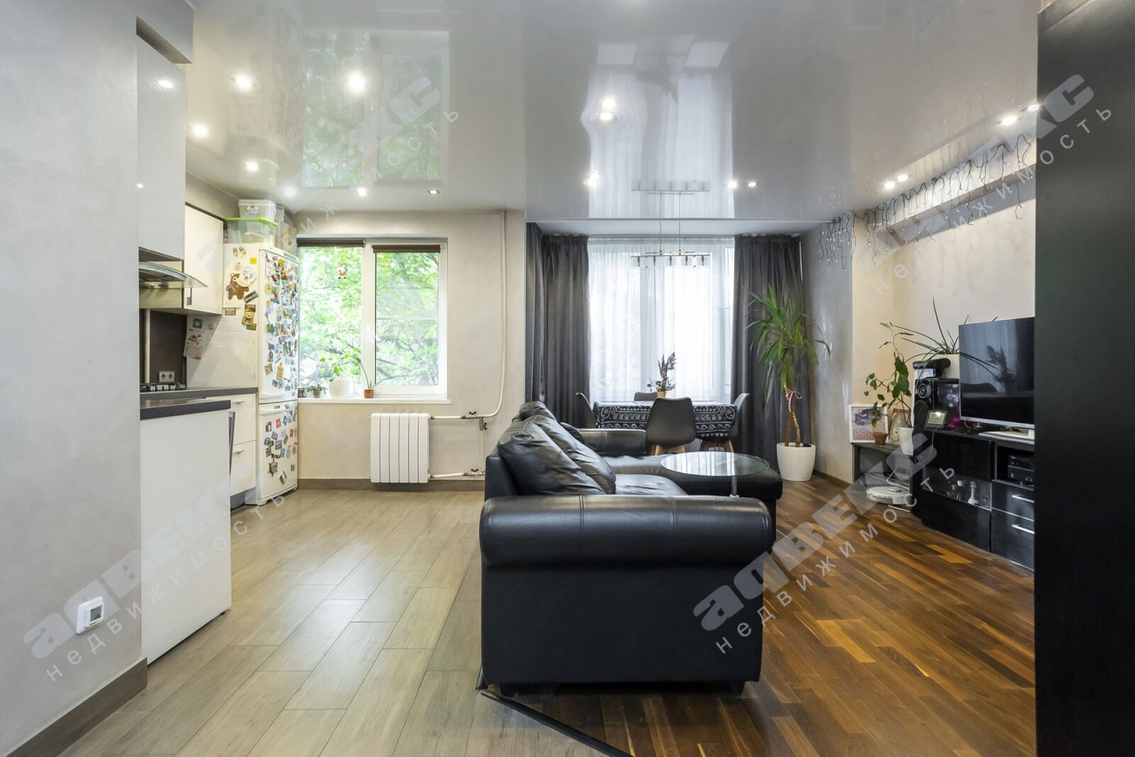Квартира очень теплая. Окна с обеих сторон выходят в зеленый двор, обеспечивая полную тишину. Во дворе оборудованная детская площадка. Променад вдоль набережной реки «Смоленки». Много мест для парковки автомобиля.