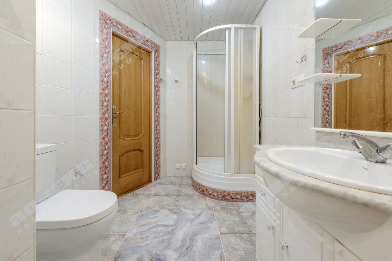 Два сан. узла не создадут утренней очереди при сборах в школу и на работу, есть бойлер на случай отключения горячей воды, большая гардеробная вместит всю верхнюю одежду, обувь, самокаты или велосипеды.