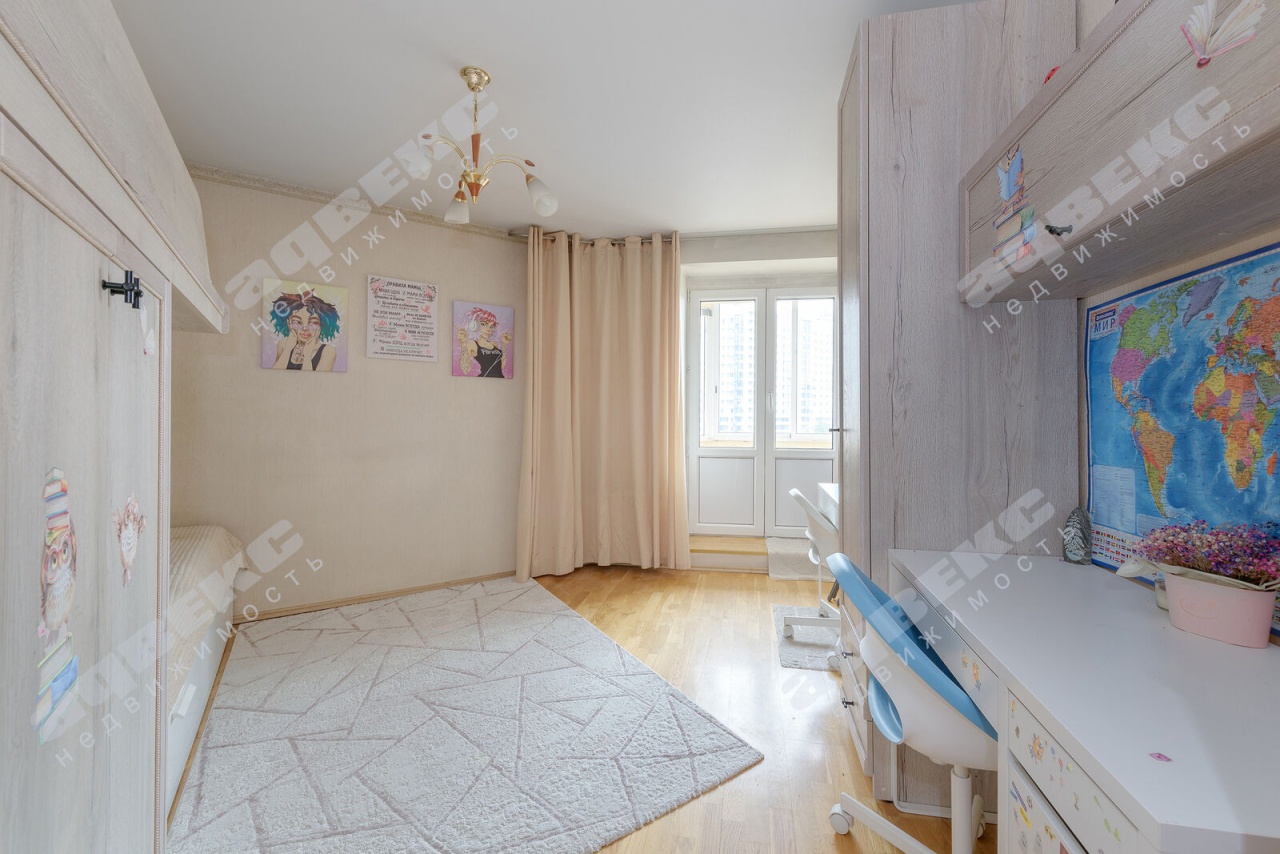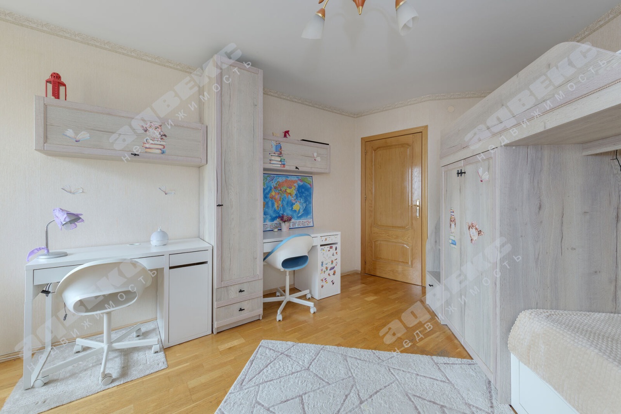 Детская комната с 2-х ярусной кроватью, рабочим столом и местами для хранения вещей даст возможность учёбы, игр и отдыха Вашим детям.