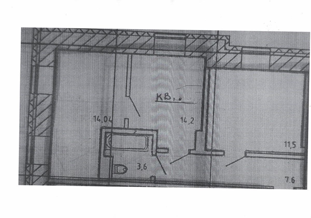 общая площадь: 50.9 кв. м., жилая: 25.54 кв. м., кухня: 14.2 кв. м., с/у 3.6 кв. м совмещен