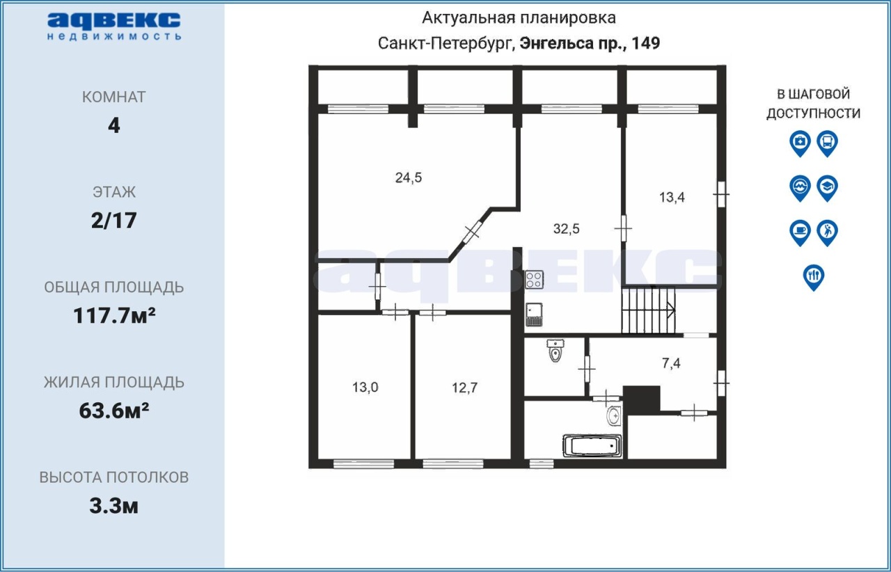 Этаж | 2 | Общая площадь | 117.7 кв.м. |