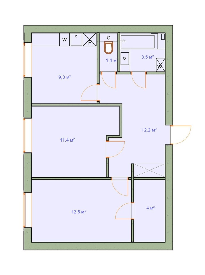 Жилая площадь 23.9 кв.м. Число комнат 2