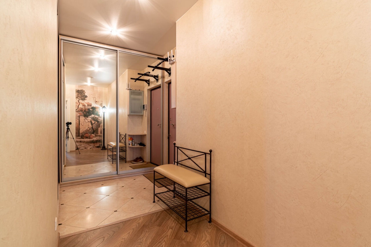 - В прихожей большие ниши со встроенными шкафами для хранения (остаётся покупателю.).