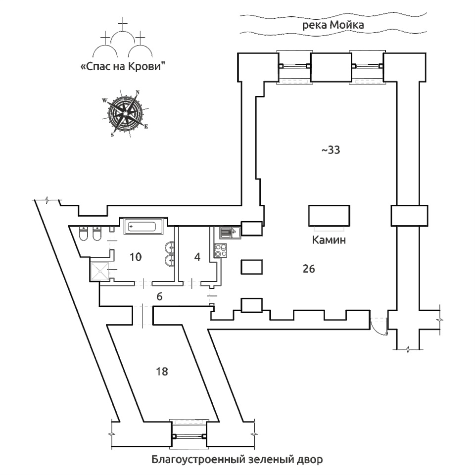 Квартира в двух шагах от Спаса на Крови. Редкое предложение в Золотом треугольнике. Огромные окна. Камин. Потолки 4.1 м. Вид на Мойку и Марсово поле. Рядом всемирно известные достопримечательности Петербурга. В квартире выполнены качественные черновые работы: полностью заменены все инженерные коммуникации, разведён воздуховод под систему вентиляции, установлено кондиционированное оборудование Daikin с продуманной трассировкой. Отдельно проложена система встроенного пылесоса с разводкой по квартире и выводами под подключение оборудования — решение, повышающее уровень комфорта в повседневной жизни. Под полом предусмотрено около 50 см технического пространства, рассчитанного именно под организацию винного погреба — редкая и ценная возможность для квартиры в историческом центре. Разработан и согласован проект планировки: просторная гостиная с двумя высокими окнами и компактной кухонной зоной; эффектная прихожая с креслами и камином у входа; приватный блок — спальня, ванная и гардеробная. Вход в парадную организован со стороны зелёного дворика с детской площадкой; окна спальни выходят в этот тихий внутренний сад, что большая редкость для центральной части города. В парадной раскрыта и бережно отреставрирована историческая кирпичная кладка. Фасад дома отреставрирован в стилистике второй половины XIX века. На первом этаже расположено хорошо охраняемое VIP-отделение банка, что дополнительно усиливает уровень безопасности. Локация — сердце Петербурга: Марсово поле, Летний и Михайловский сады — в нескольких минутах пешком. Здесь легко совмещать ритм центра и удовольствие от прогулок. Напротив дома, на территории бывшего Конюшенного ведомства, запланирован крупнейший культурный кластер Петербурга с творческими, образовательными, выставочными и торгово-досуговыми пространствами, что формирует дополнительный потенциал развития этой части центра.