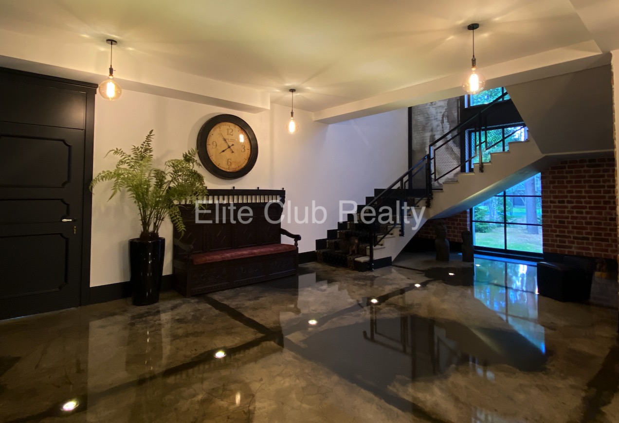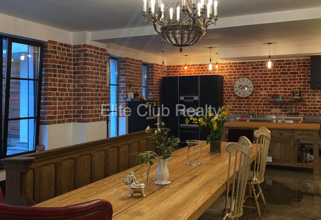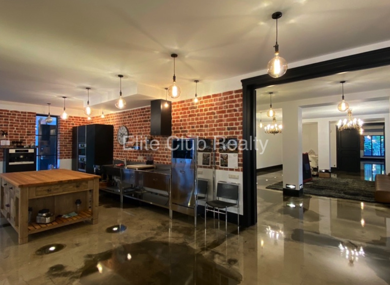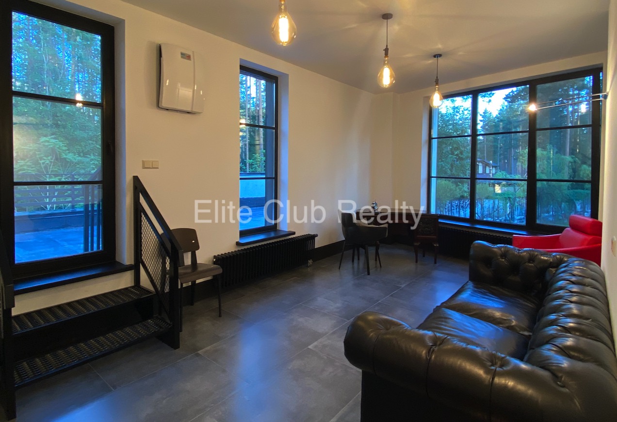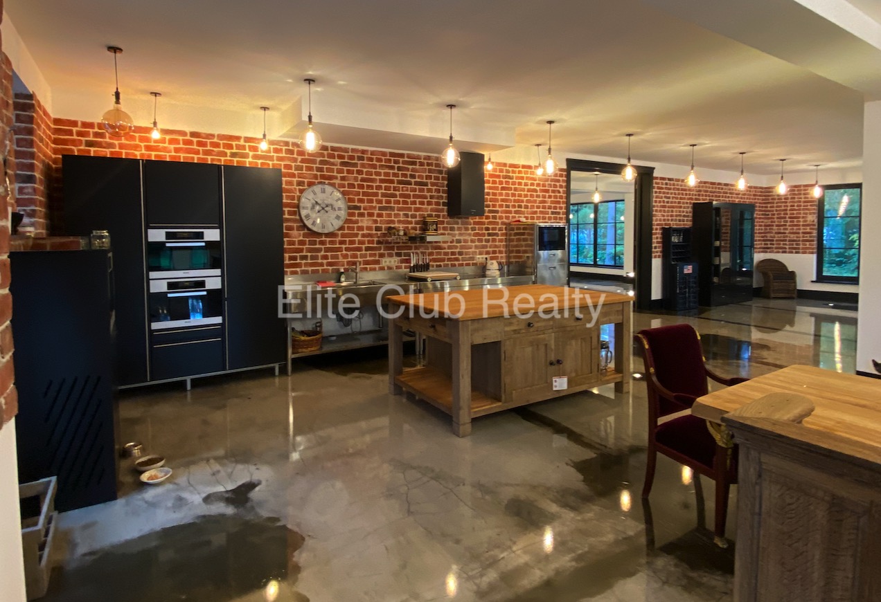 Планировка коттеджа: На первом этаже находится библиотека, гостиная, кухня-столовая, котельная, комната, два сан. узла. На втором этаже три спальни, кабинет, четыре сан. узла. В доме 25 метровый бассейн, все оборудование под него установлено, хамам. Также на территории земельного участка есть летний бассейн. Дом окружён лесом с чистейшим воздухом. Территория поселка огорожена высоким забором и находится под круглосуточным наблюдением профессионального охранного предприятия.