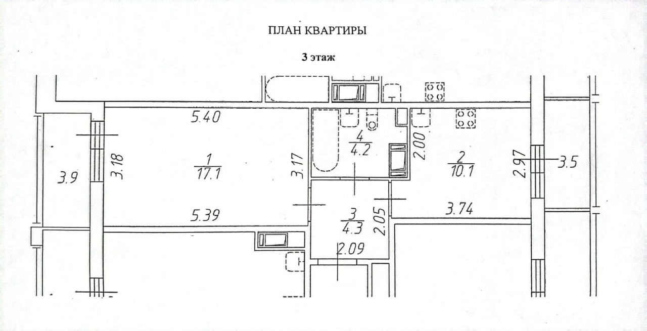 | Этаж | 3 | Общая площадь | 35.7 кв.м. |