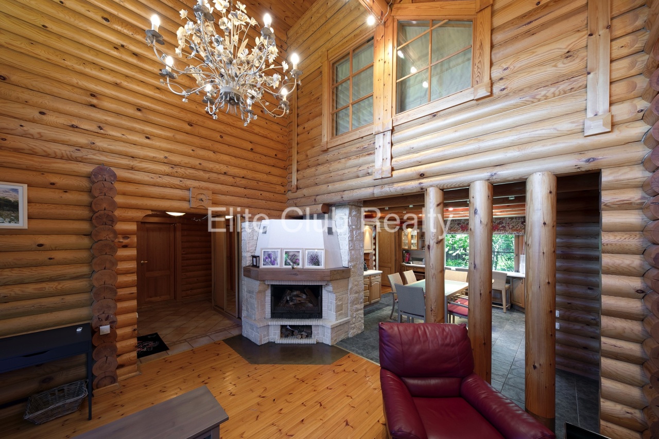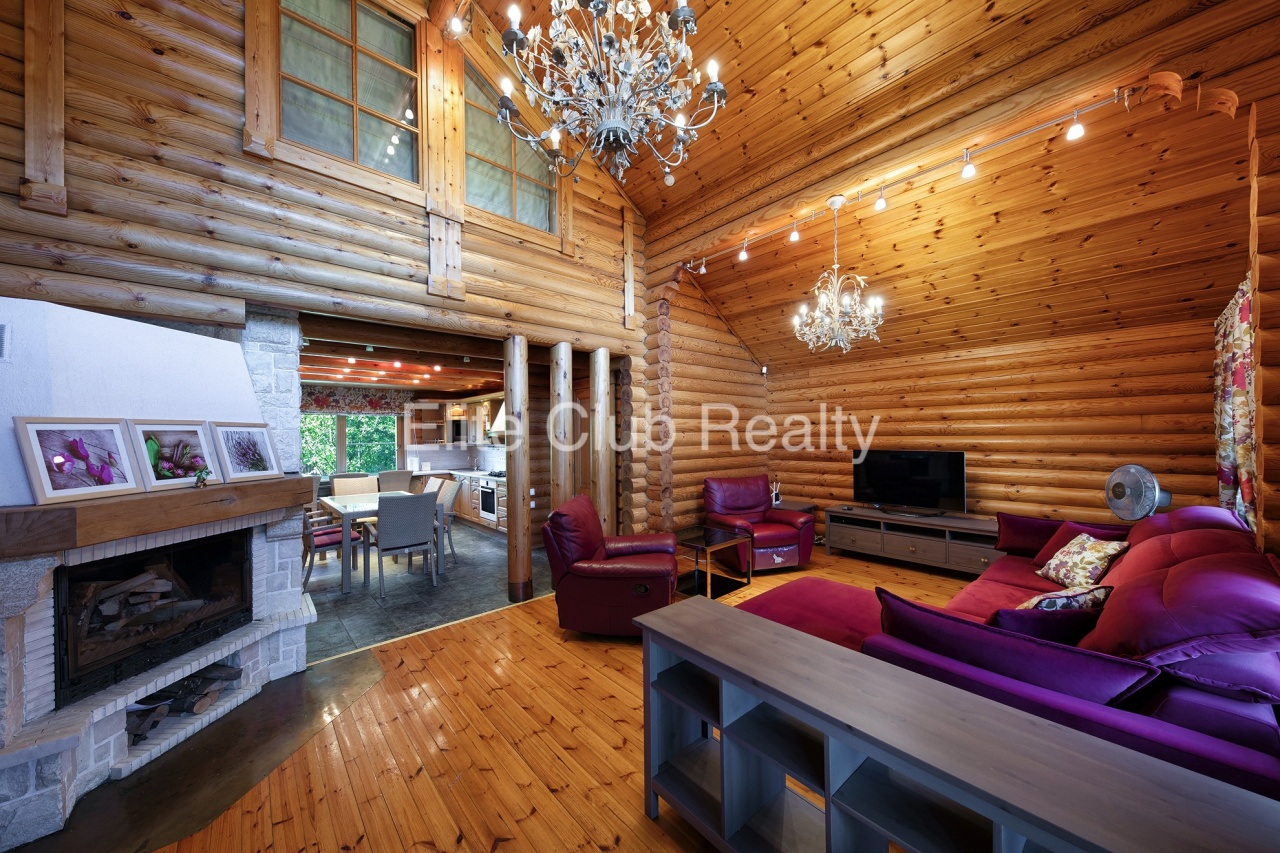 - Просторная гостиная с камином, создающая атмосферу уюта;