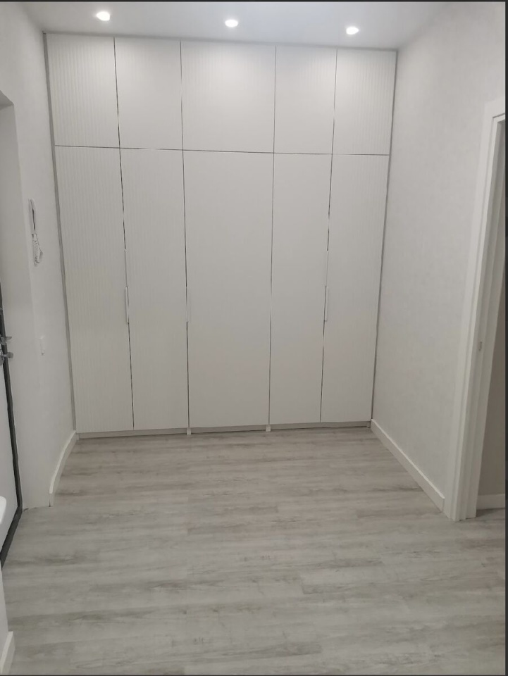Просторная прихожая в светлых тонах 8.2 кв. м и вместительным шкафом