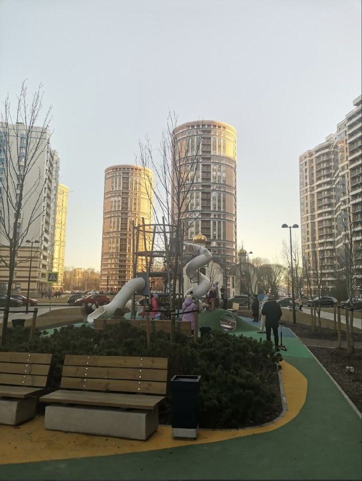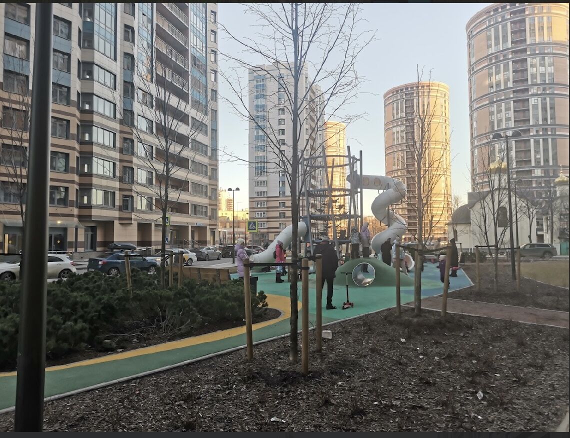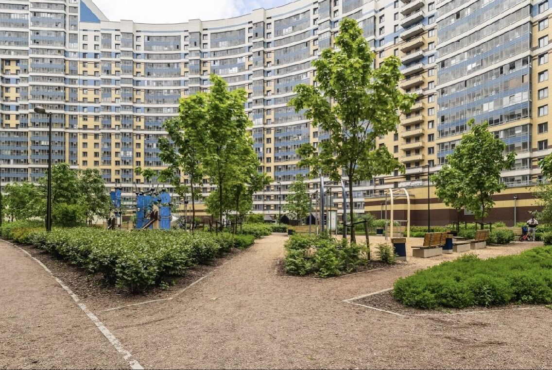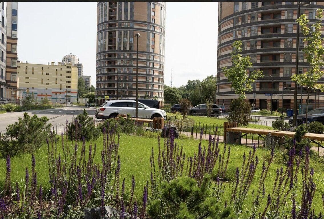 К южный корпусам квартала примыкает сквер у места дуэли А. С. Пушкина, а напротив северных корпусов раскинулся Удельный парк, один из крупнейших зеленых массивов в Санкт-Петербурге.