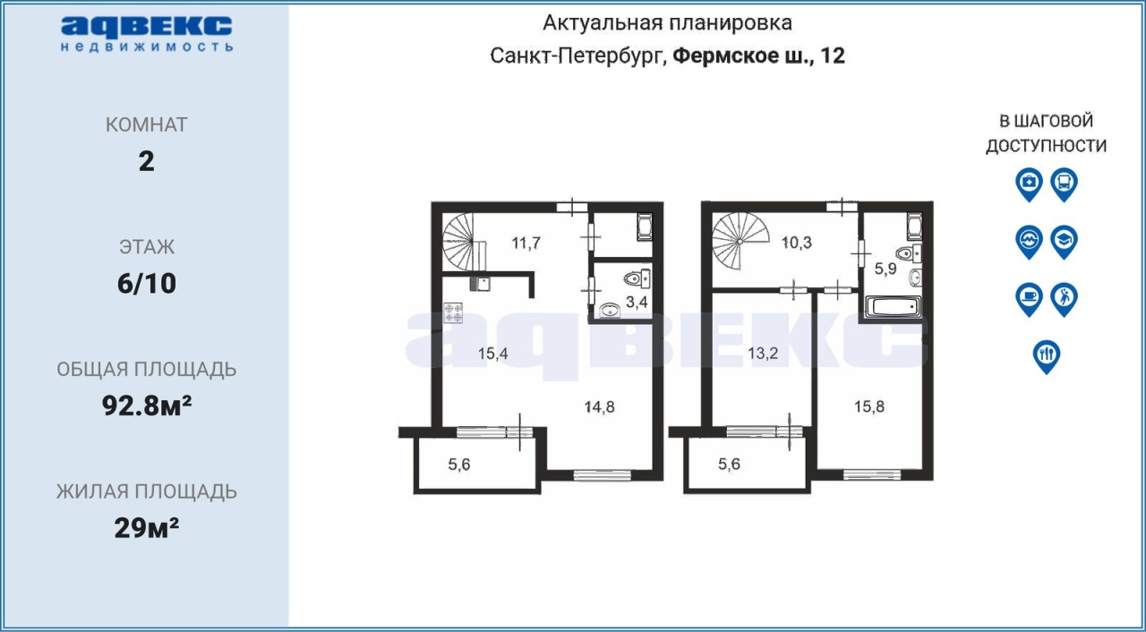Этаж 6 Общая площадь 92.8 кв.м.