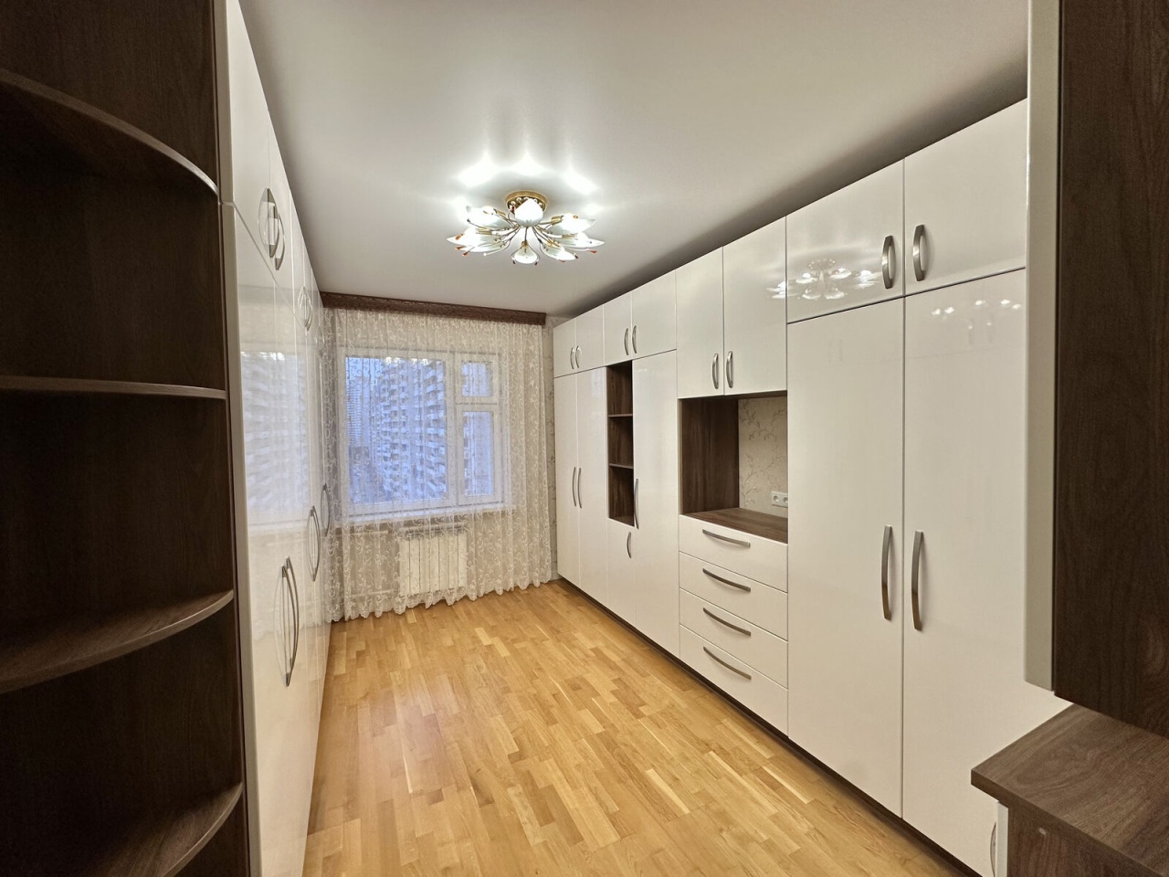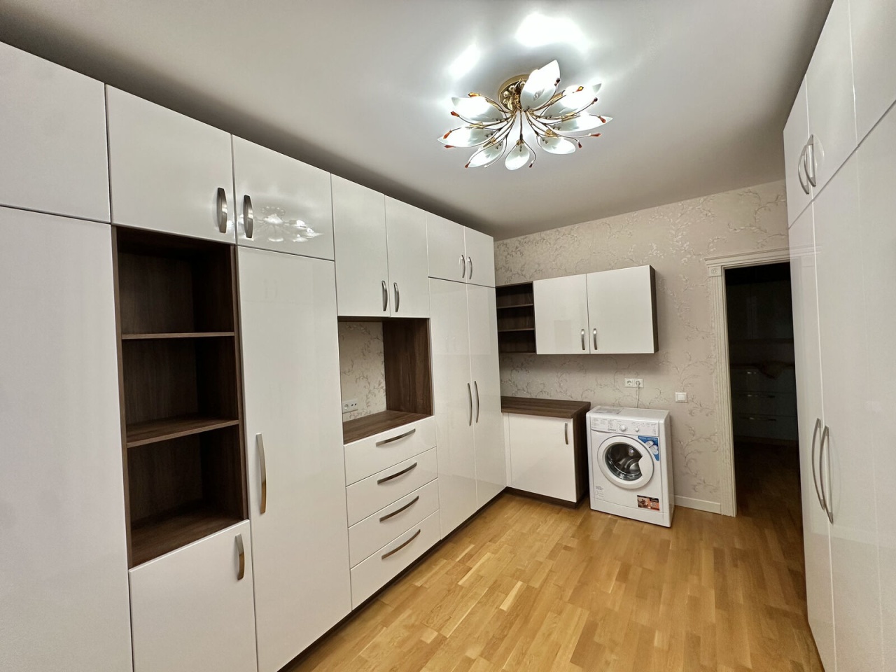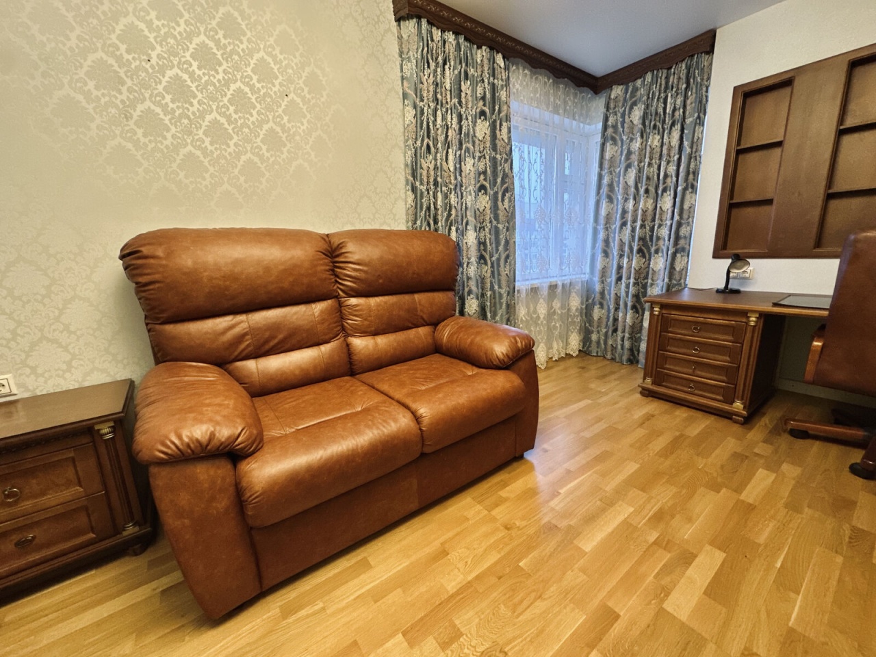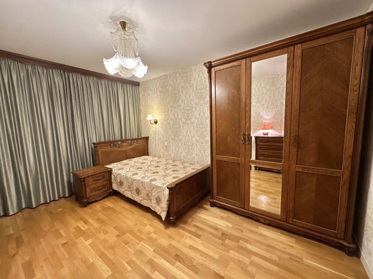 Ремонт выполнен в классическом стиле с использованием дорогих материалов. Настоящий массив дуба в мебели, паркетная доска под ногами, массивные межкомнатные двери для полной тишины и хрустальные светильники, наполняющие пространство изяществом.