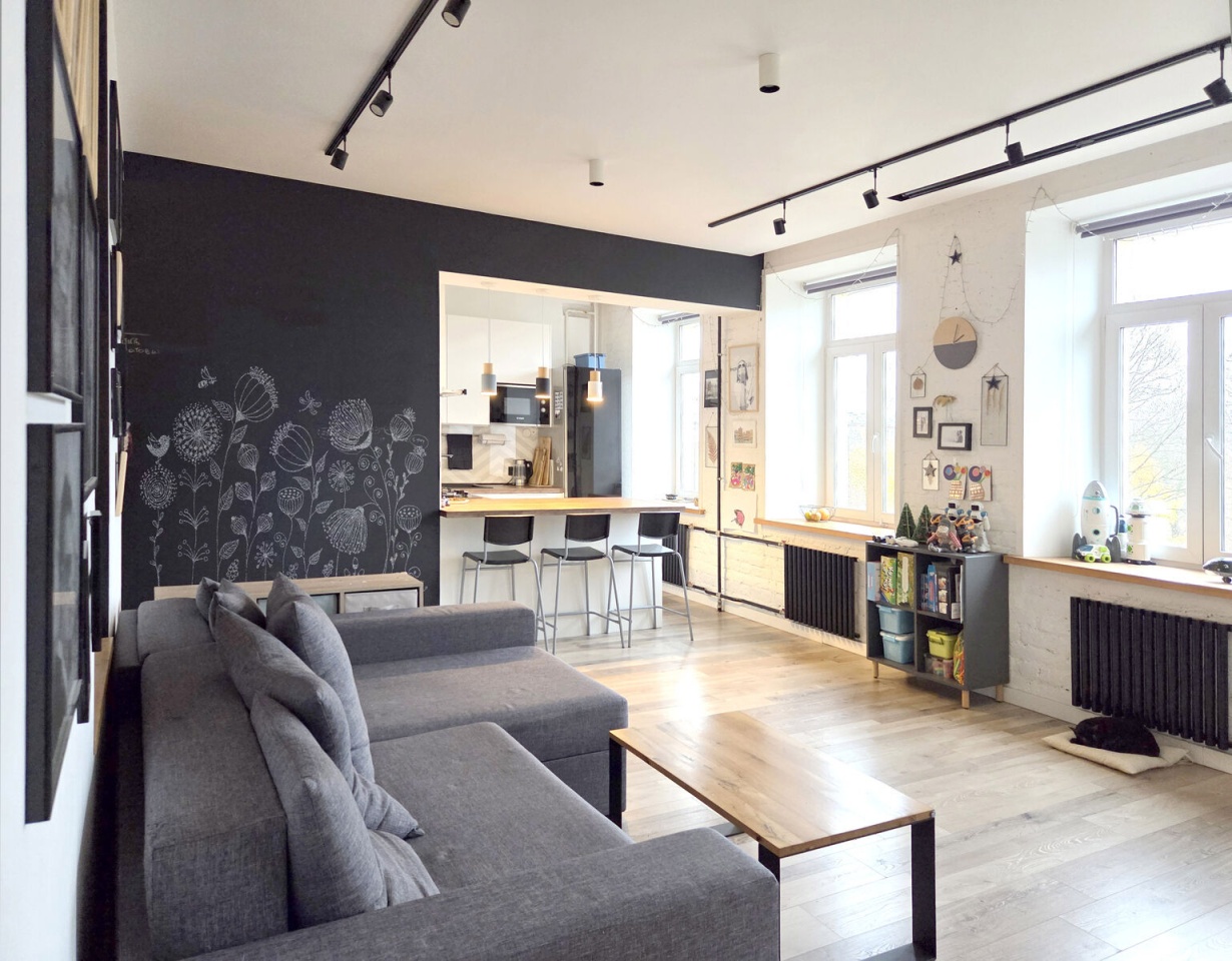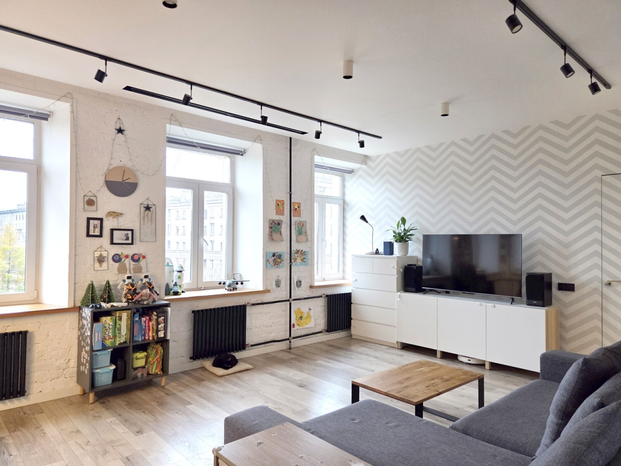 Дизайнерская двухкомнатная квартира с видом на парк в историческом доме на Васильевском острове.