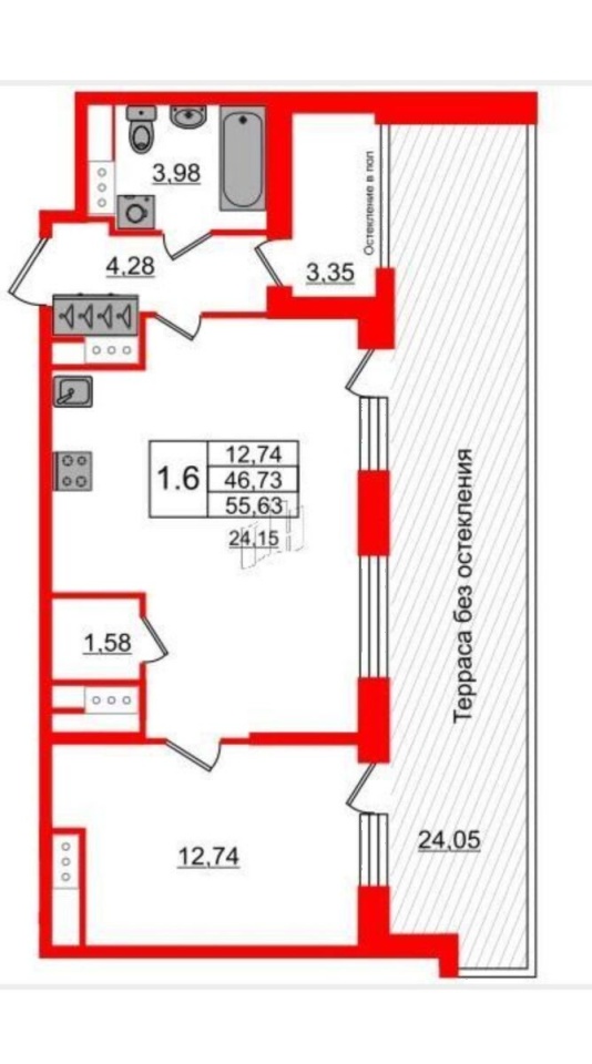 | Площадь кухни | 24 кв.м. | Состояние ремонта | Евроремонт |