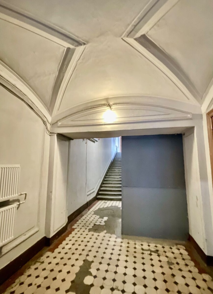 Основной вход- с улицы, с отреставрированной входной дверью. Есть лифт.