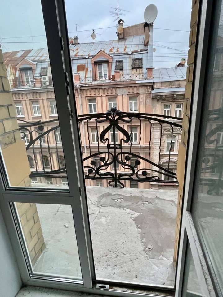 Вид на улицу - на крыши и исторические здания, вид во двор- на зелень и на открытое пространство.