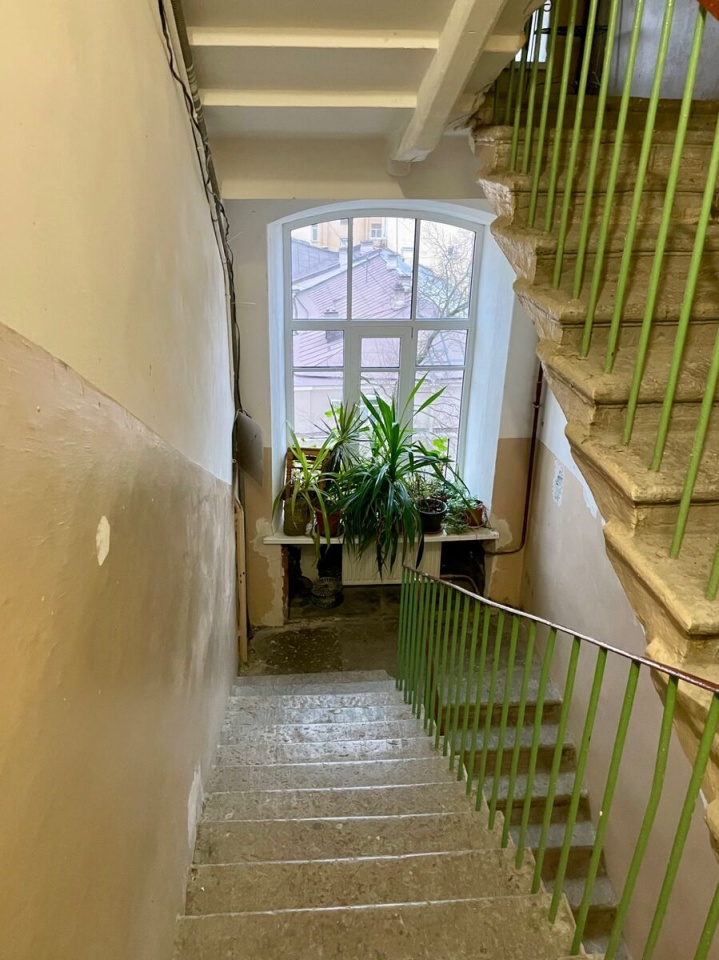 Вход на черную лестницу с зеленого двора. Лестница с окном и в хорошем состоянии.