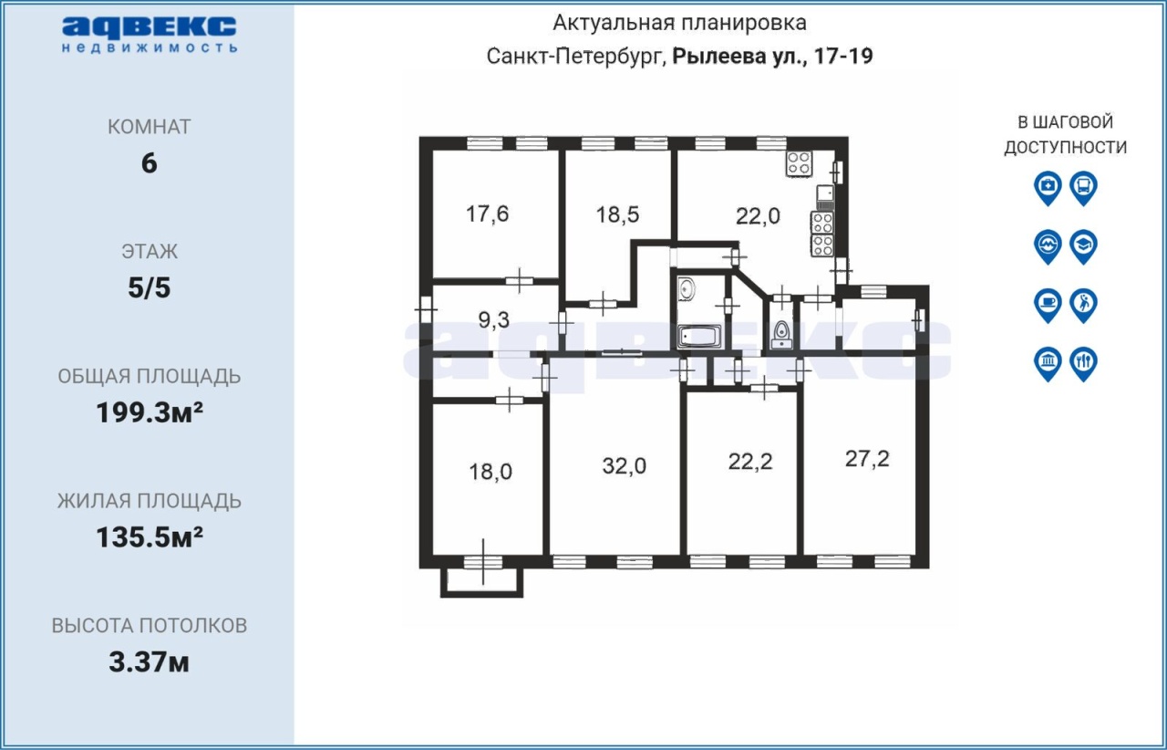 | Этаж | 5 | Общая площадь | 199.3 кв.м. |