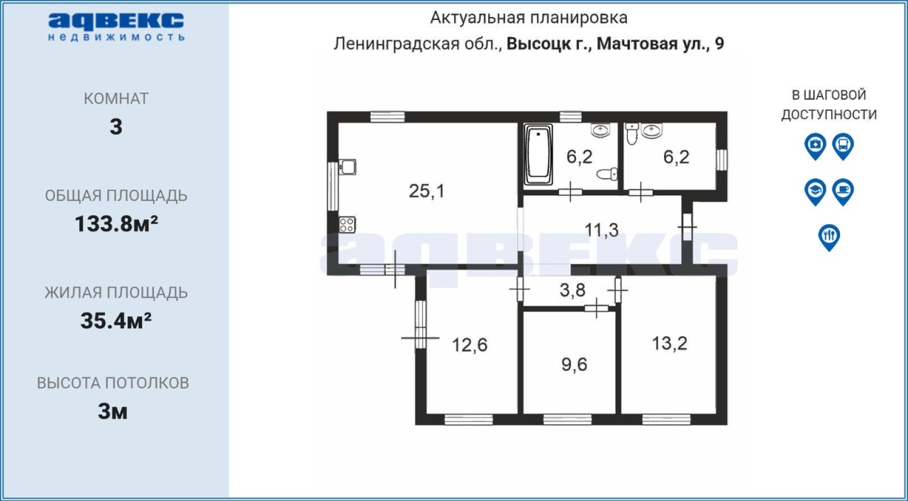 | Общая площадь | 133.8 кв.м. | Жилая площадь | 35.4 кв.м. |