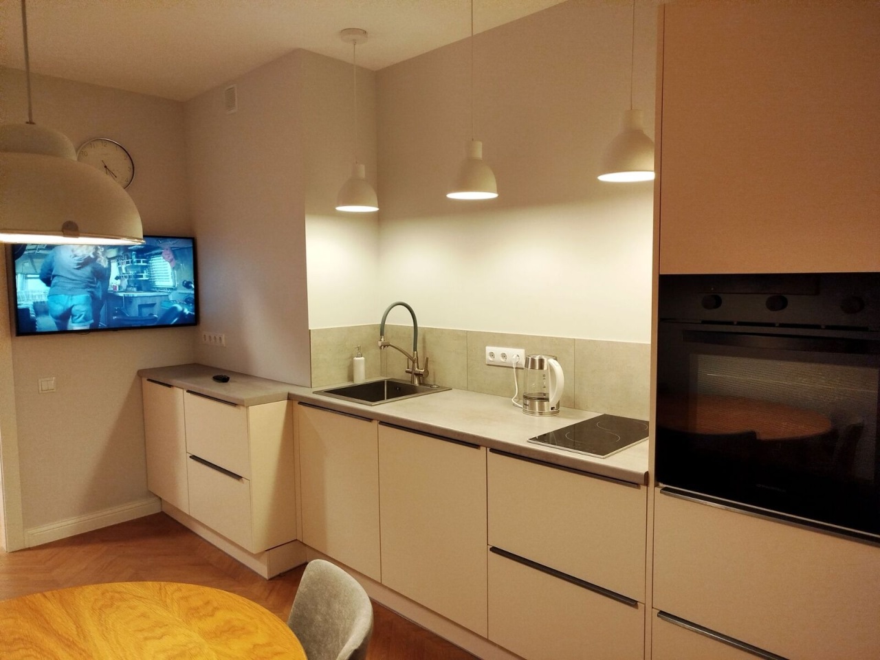 Есть вся необходимая мебель и техника (в том числе посудомоечная и сушильная машины, 2 ТВ) для комфортного проживания.