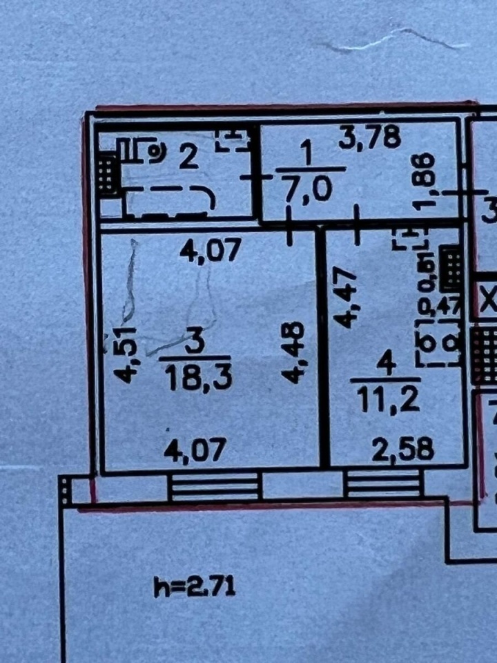Жилая площадь 18.3 кв.м. Число комнат 1