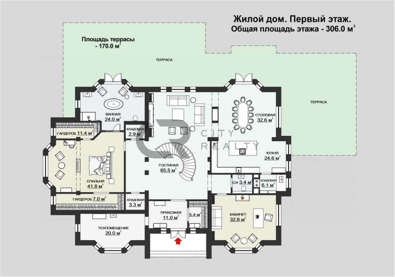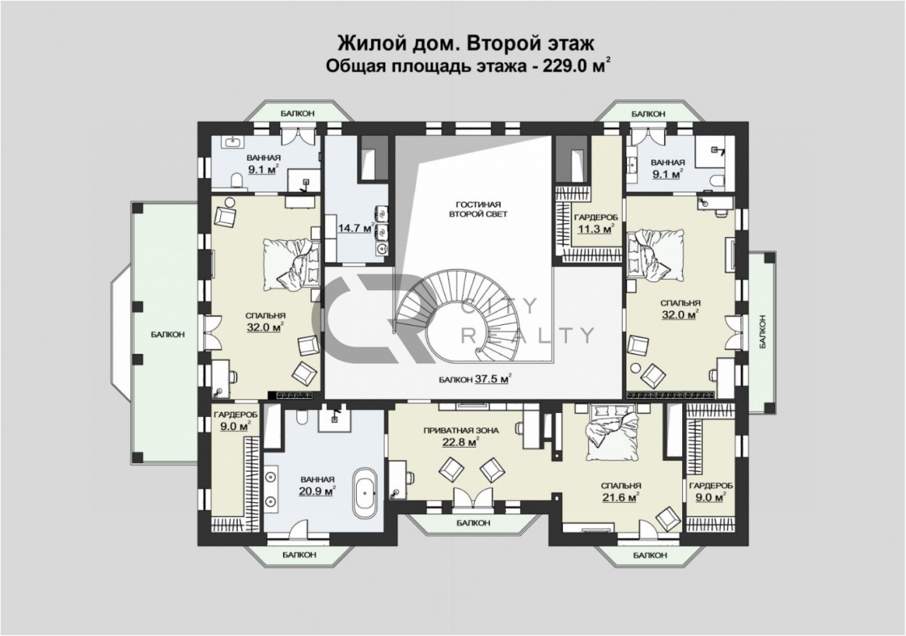 • 4 мастер-спальни – большая редкость среди аналогов. Каждая спальня со своим балконом, гардеробной и просторной ванной комнатой.