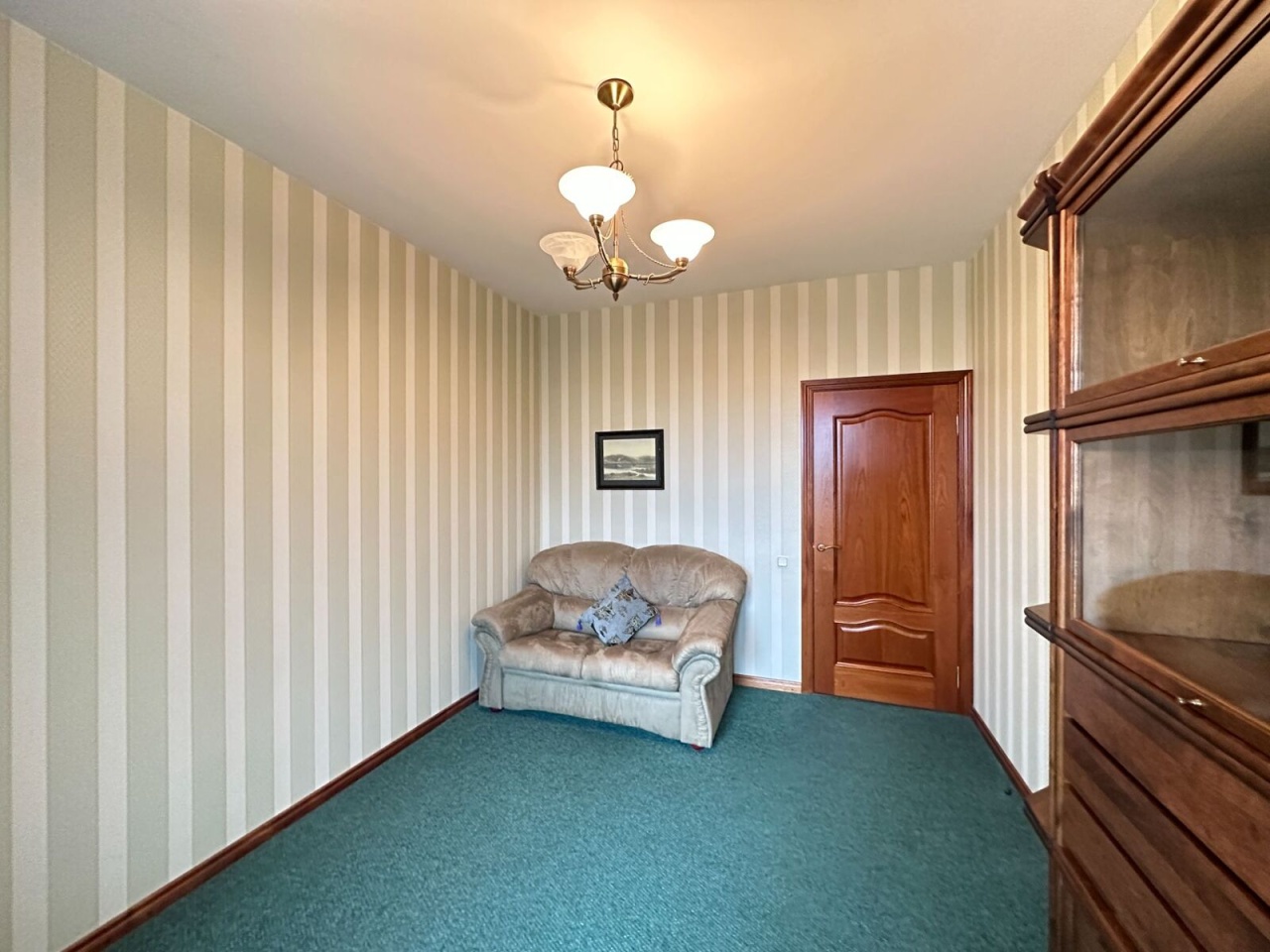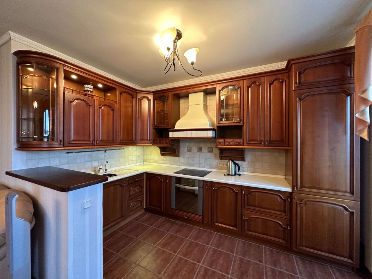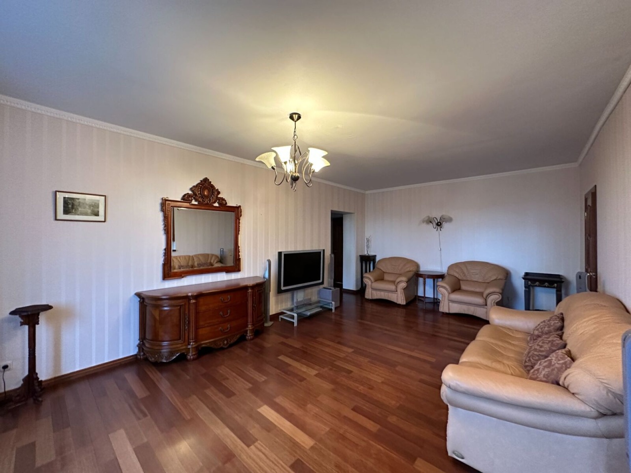 Жильё выполнено с применением качественных материалов и современного евроремонта. В отделке использованы паркет из массива красного дерева и итальянский кухонный гарнитур из массива ореха. В квартире сохранена мебель в комнатах и на кухне, включая мягкую мебель из натуральной кожи. Установлена электрическая плита. Квартира продается с полной комплектацией мебели и техники.