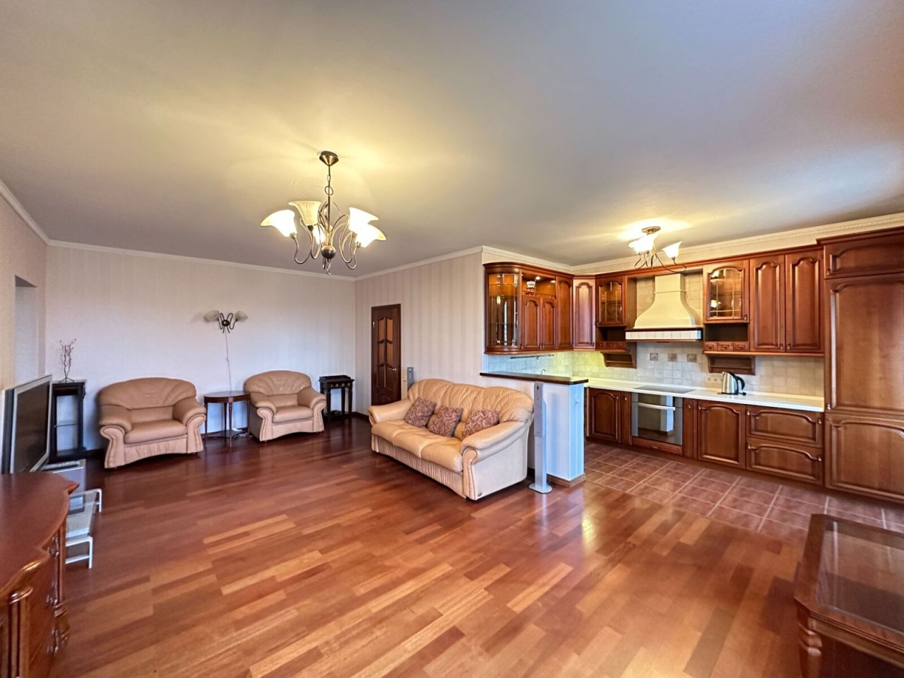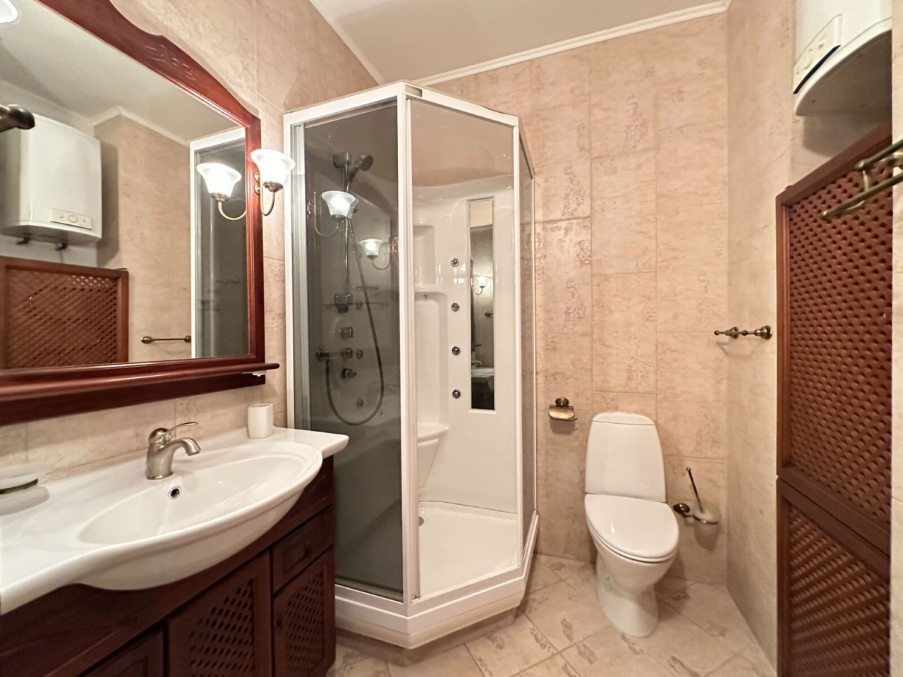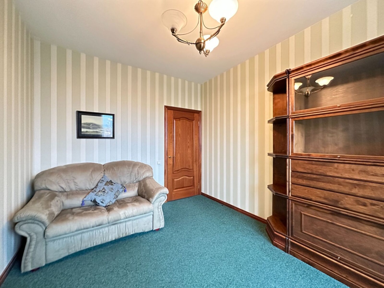 Жильё выполнено с применением качественных материалов и современного евроремонта. В отделке использованы паркет из массива красного дерева и итальянский кухонный гарнитур из массива ореха. В квартире сохранена мебель в комнатах и на кухне, включая мягкую мебель из натуральной кожи. Установлена электрическая плита. Квартира продается с полной комплектацией мебели и техники.