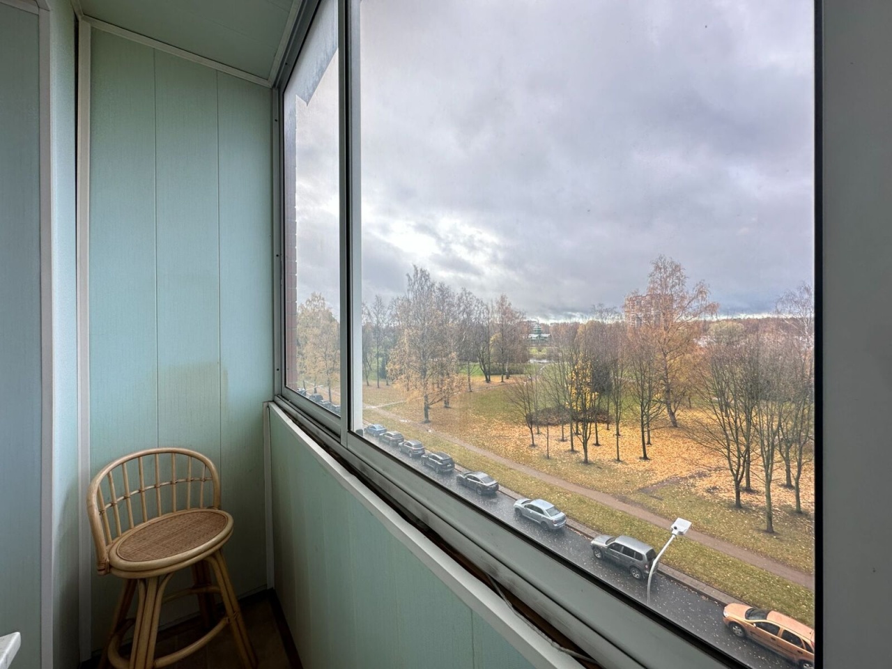 Квартира находится на 5-м этаже 10-этажного кирпичного дома, построенного в 2002 году. Высота потолков составляет 2.8 метра. Планировка включает просторную кухню-гостиную площадью 38.3 кв. м, две комнаты размером 19 и 12 кв. м, а также совмещённый санузел. В квартире имеется застеклённый балкон и лоджия, что расширяет жилое пространство и предоставляет дополнительные места для отдыха. Окна спальни выходят во внутренний двор, обеспечивая тишину и спокойствие, а окна гостиной и кабинета ориентированы на сквер Бенуа и парк Сосновка.